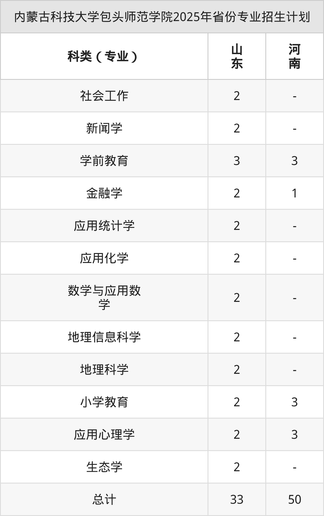 | 內(nèi)蒙古科技大學包頭師范學院2025年??谱畹头謪R總 | ||||
