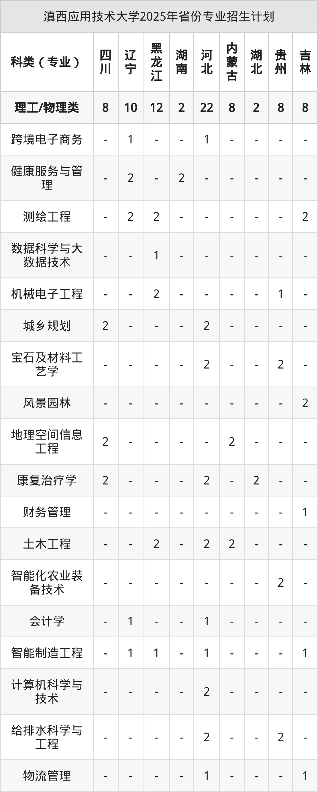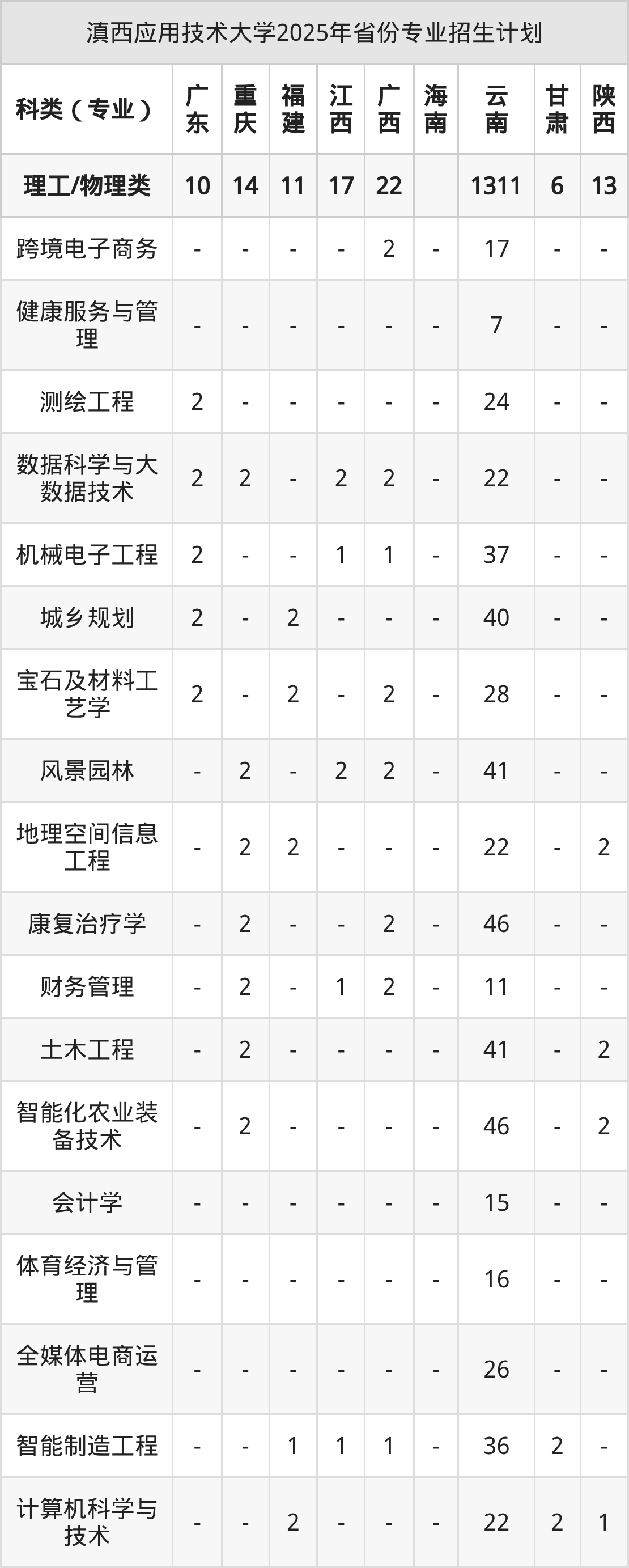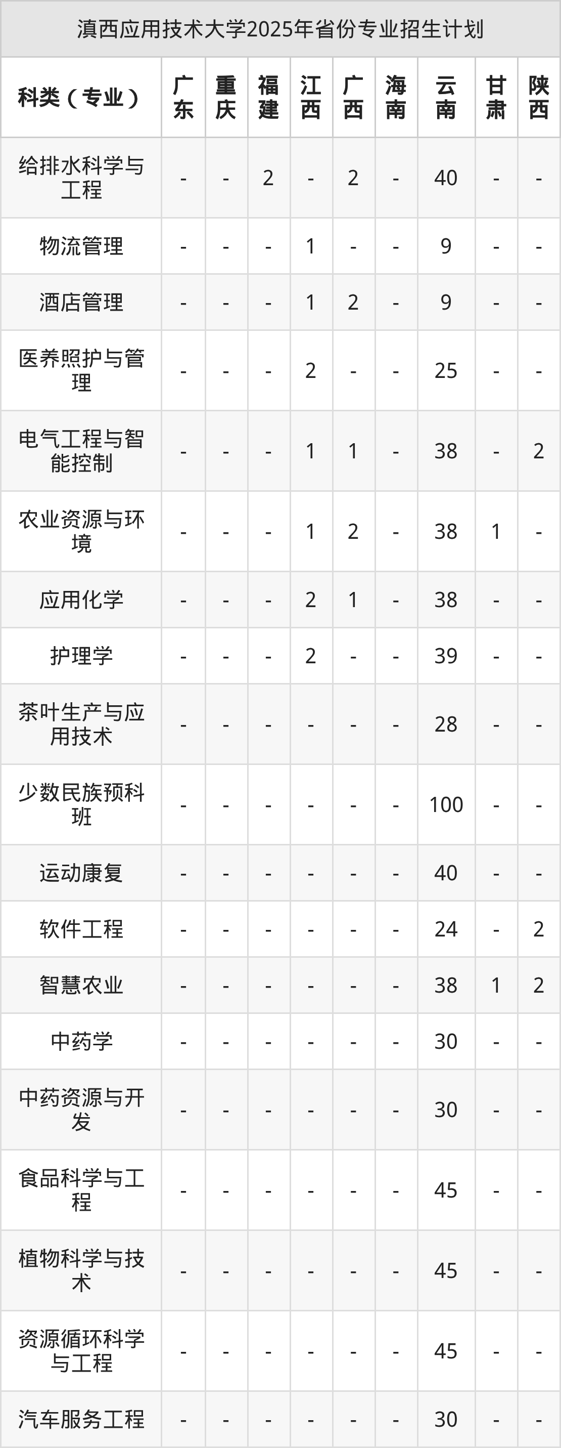 2026年滇西應(yīng)用技術(shù)大學(xué)本科招生計(jì)劃待公布,下面附上2025年數(shù)據(jù),暫供參考: