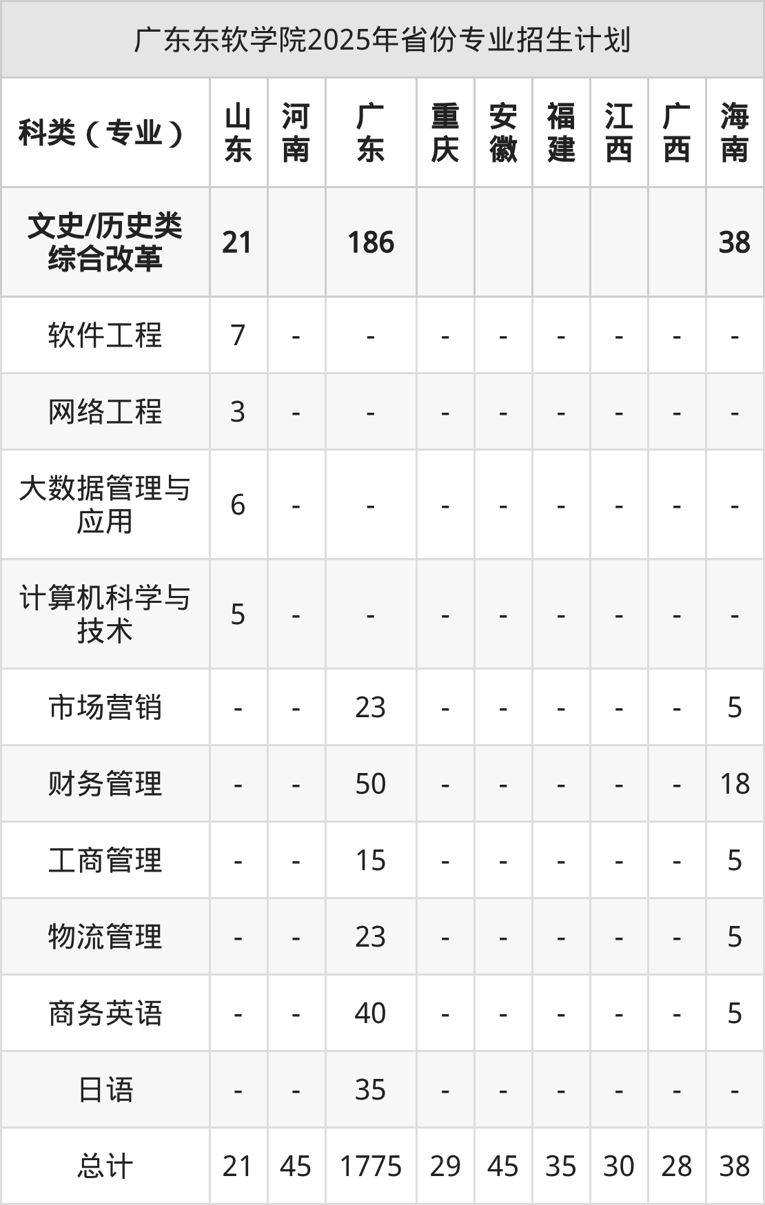 2026年廣東東軟學(xué)院本科招生計(jì)劃待公布,下面附上2025年數(shù)據(jù),暫供參考: