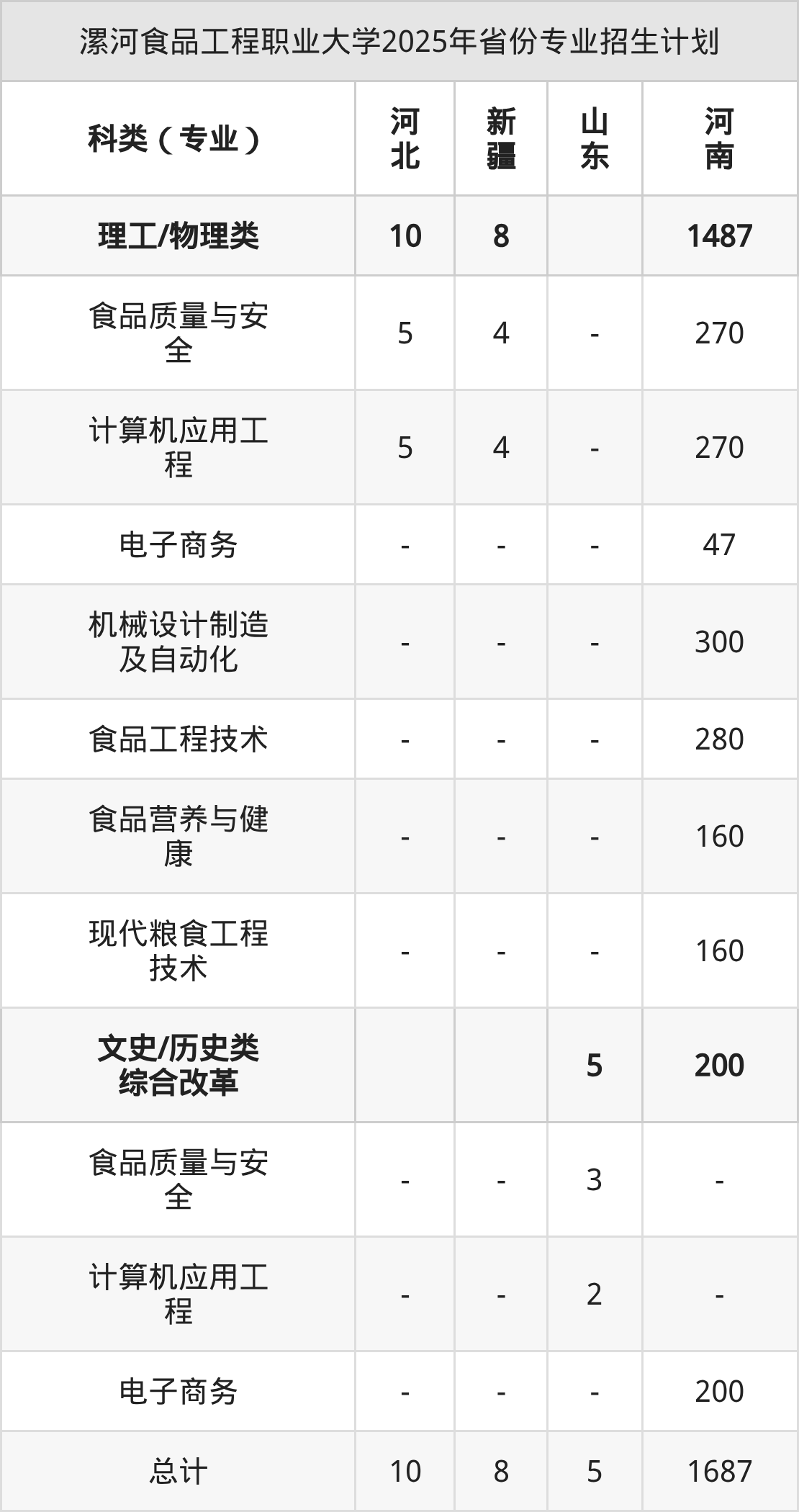 而各省份的招生計(jì)劃數(shù)為河北10人,新疆8人,山東5人,河南1687人。