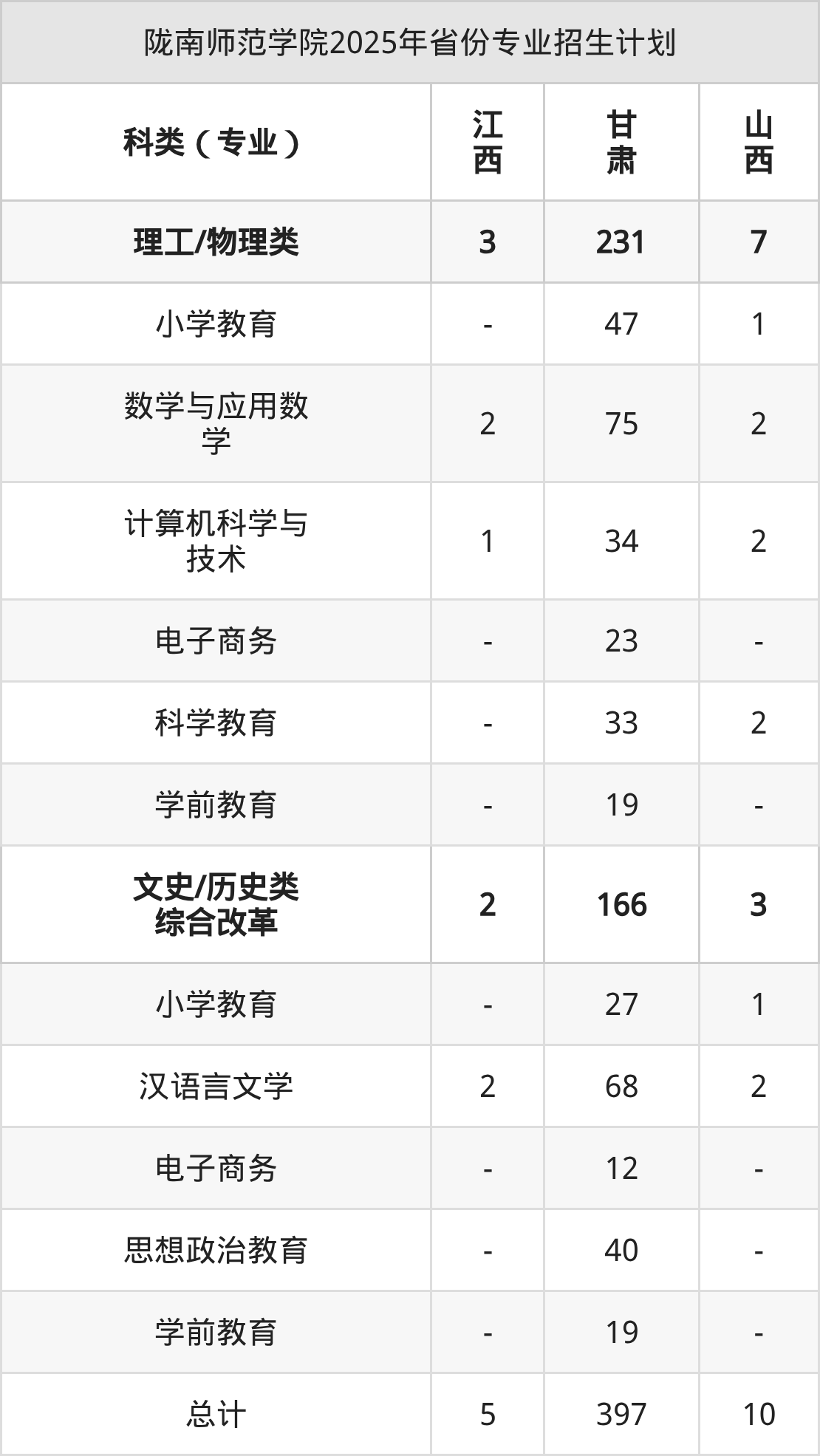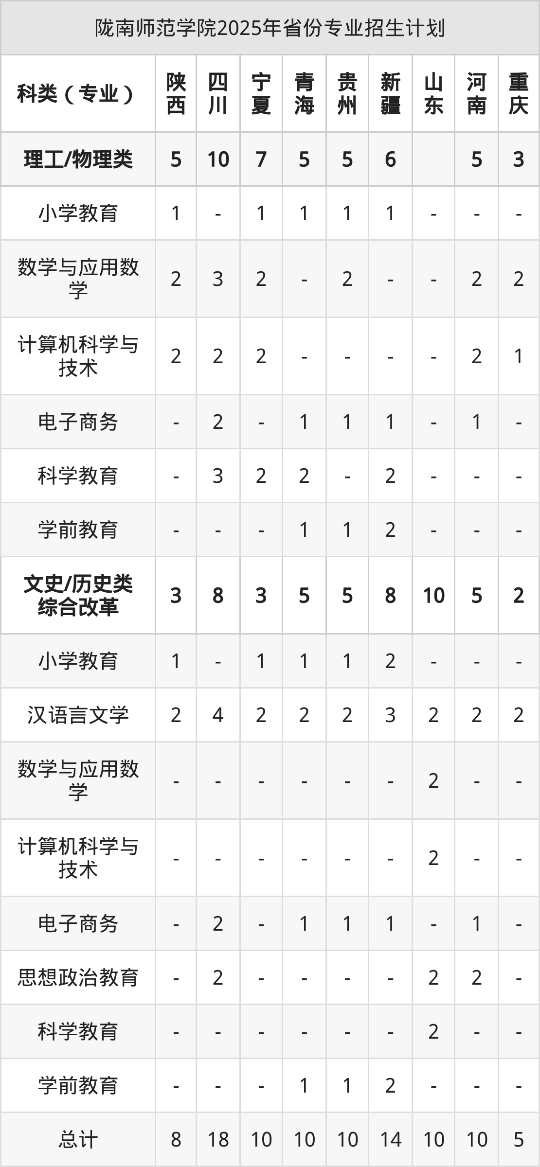 2026年隴南師范學(xué)院本科招生計劃待公布,下面附上2025年數(shù)據(jù),暫供參考: