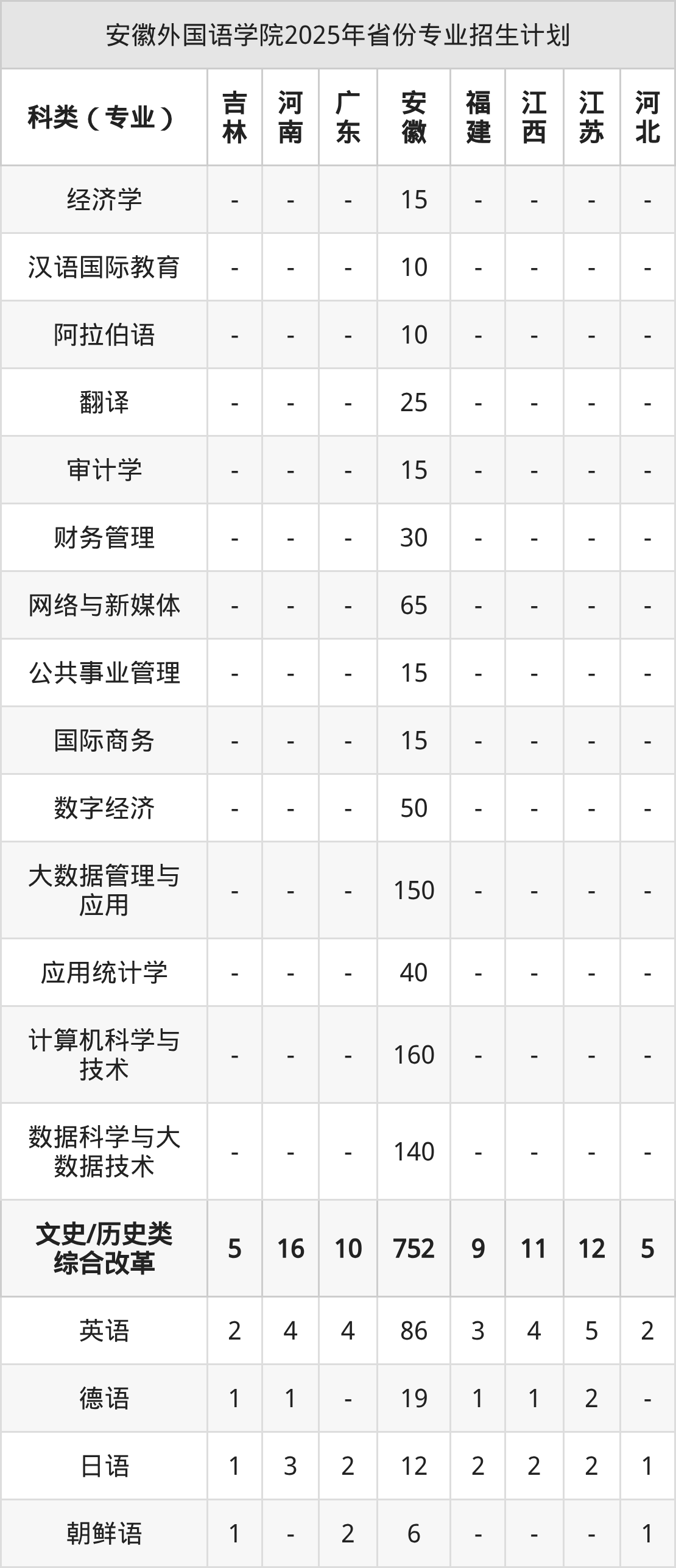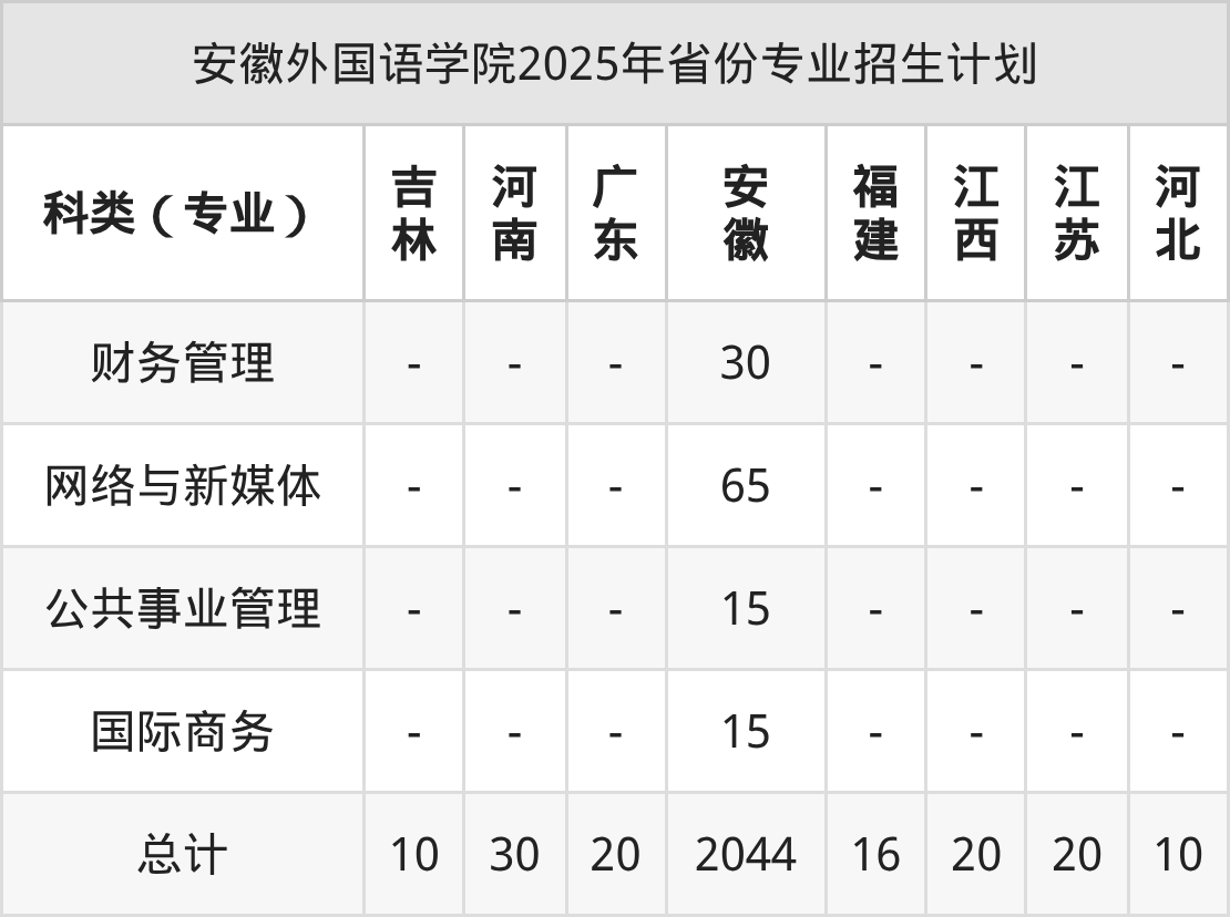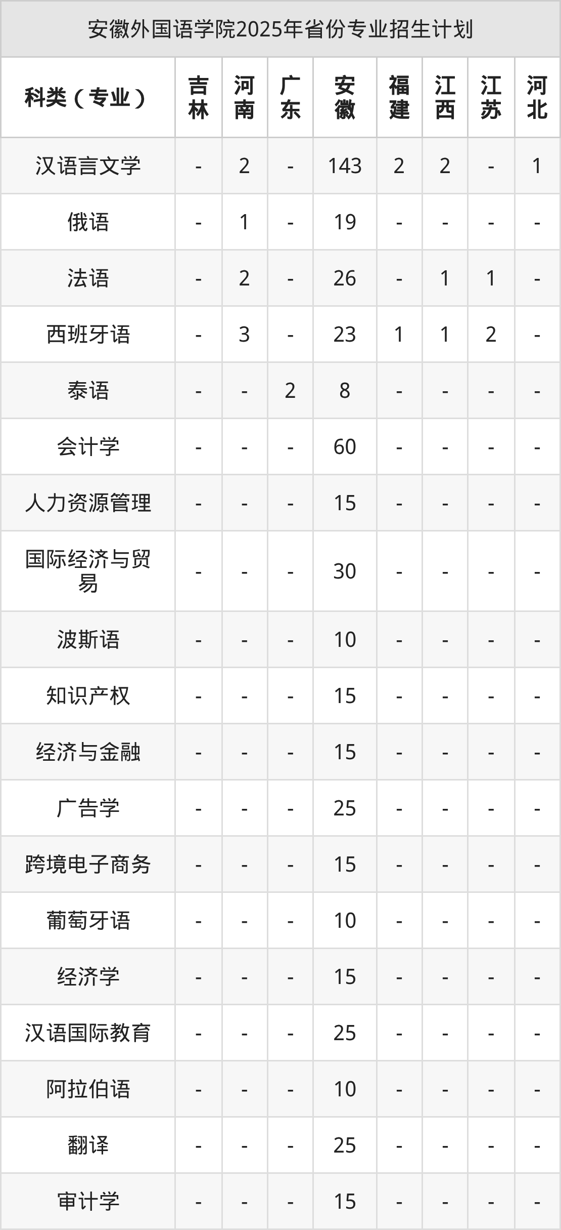 2026年安徽外國語學(xué)院本科招生計(jì)劃待公布,下面附上2025年數(shù)據(jù),暫供參考: