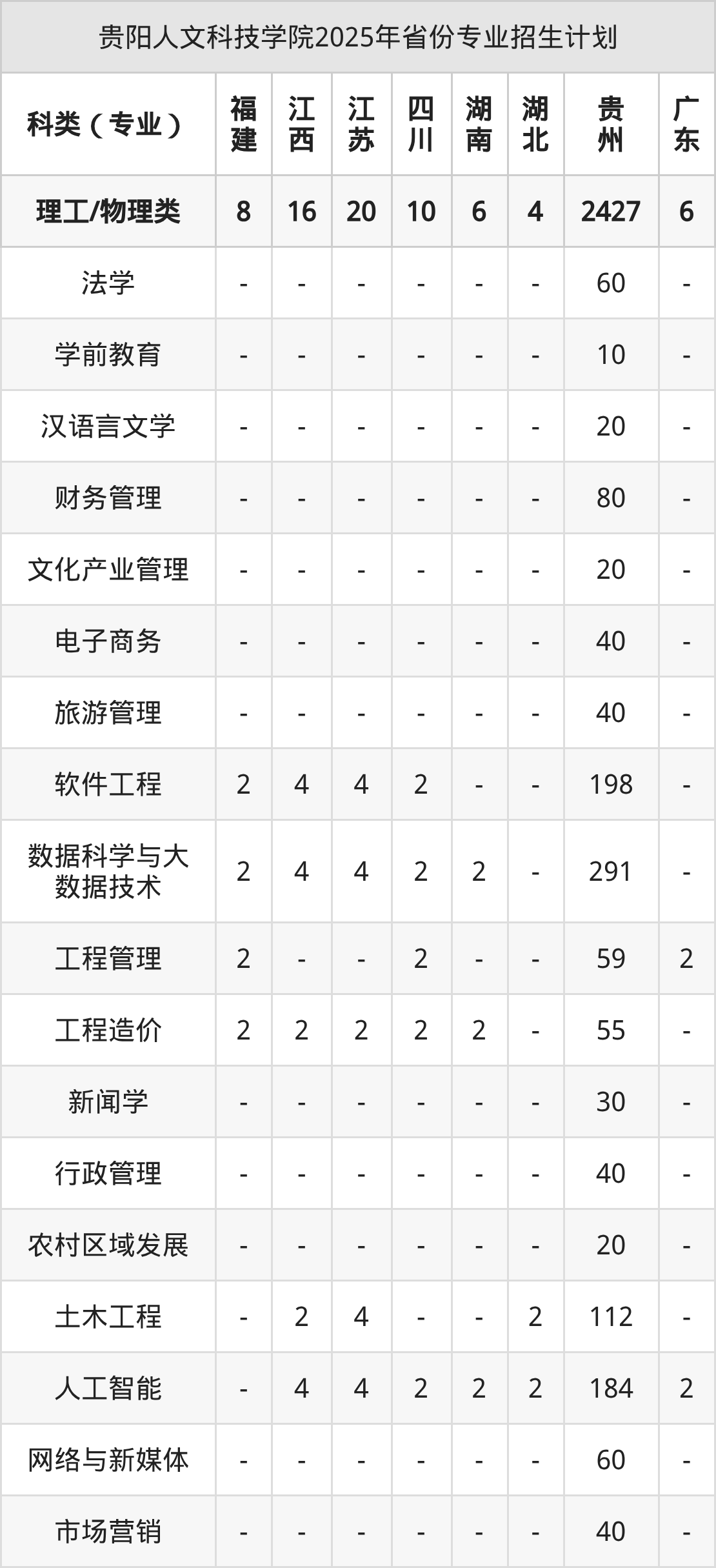 2026年貴陽人文科技學院本科招生計劃待公布,下面附上2025年數(shù)據(jù),暫供參考: