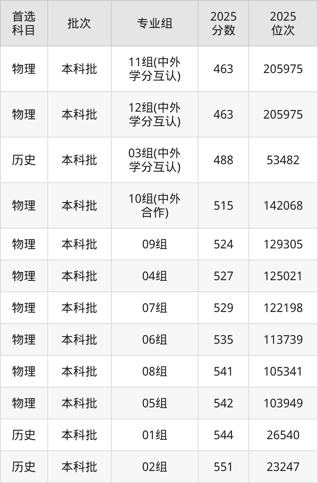 從2025年蘇州工學(xué)院在江蘇省內(nèi)的錄取分?jǐn)?shù)線來(lái)看,本科批錄取分?jǐn)?shù)線都在460分以上,錄取分?jǐn)?shù)線最高的是02組,2025年最低分為551分;錄取分?jǐn)?shù)線最低的是11組(中外學(xué)分互認(rèn)),2025年最低分為463分。