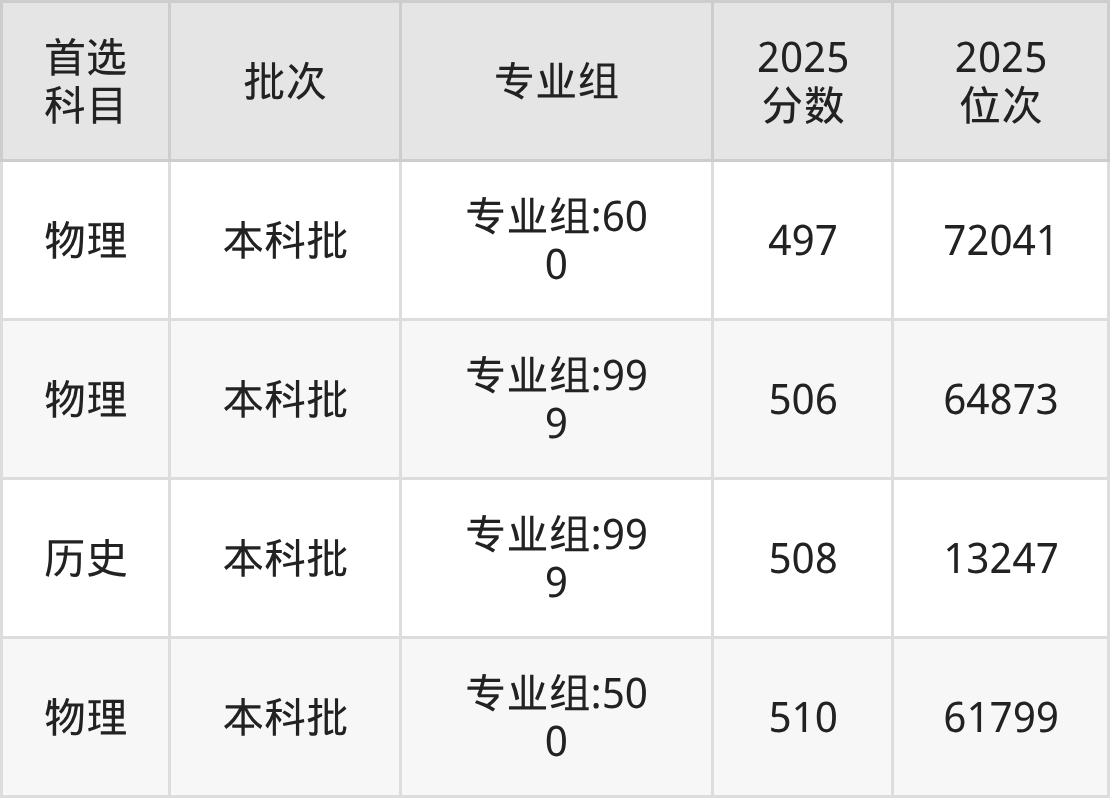 從2025年莆田學(xué)院在福建省內(nèi)的錄取分?jǐn)?shù)線來看,本科批錄取分?jǐn)?shù)線都在490分以上,錄取分?jǐn)?shù)線最高的是專業(yè)組:500,2025年最低分為510分;錄取分?jǐn)?shù)線最低的是專業(yè)組:600,2025年最低分為497分。