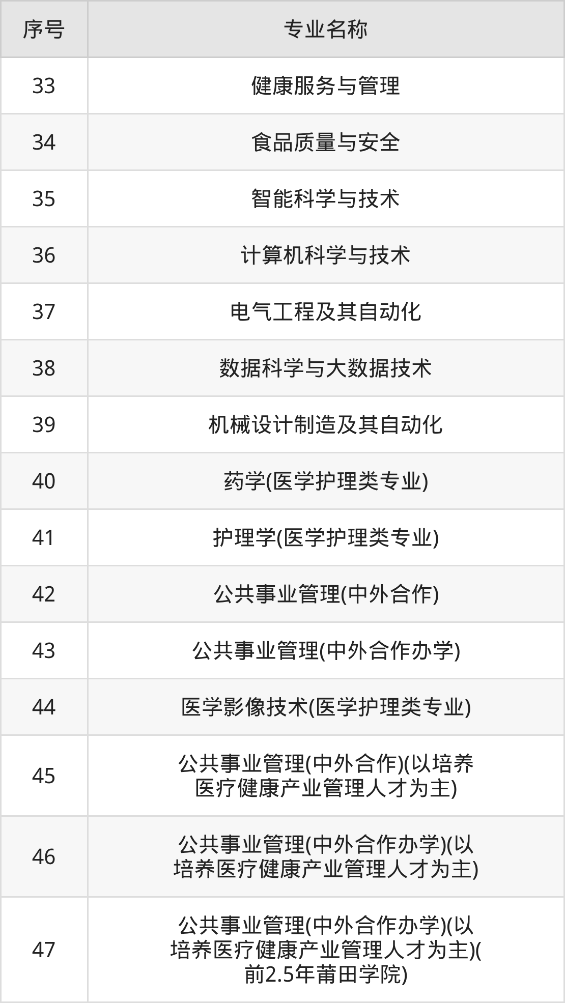 目前,莆田學(xué)院公布了2025年本科招生專業(yè),共47個(gè)。