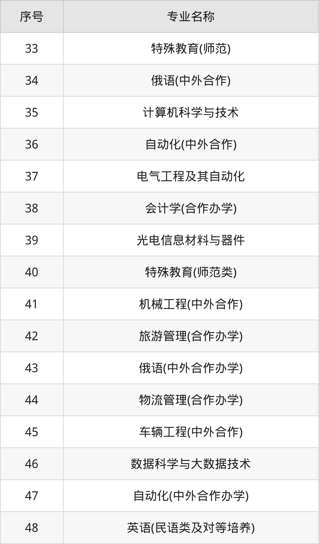 物理類(理科)本科招生專業(yè):園林、俄語、英語、日語、經(jīng)濟學(xué)、金融學(xué)、會計學(xué)、自動化、風(fēng)景園林、物流管理等。