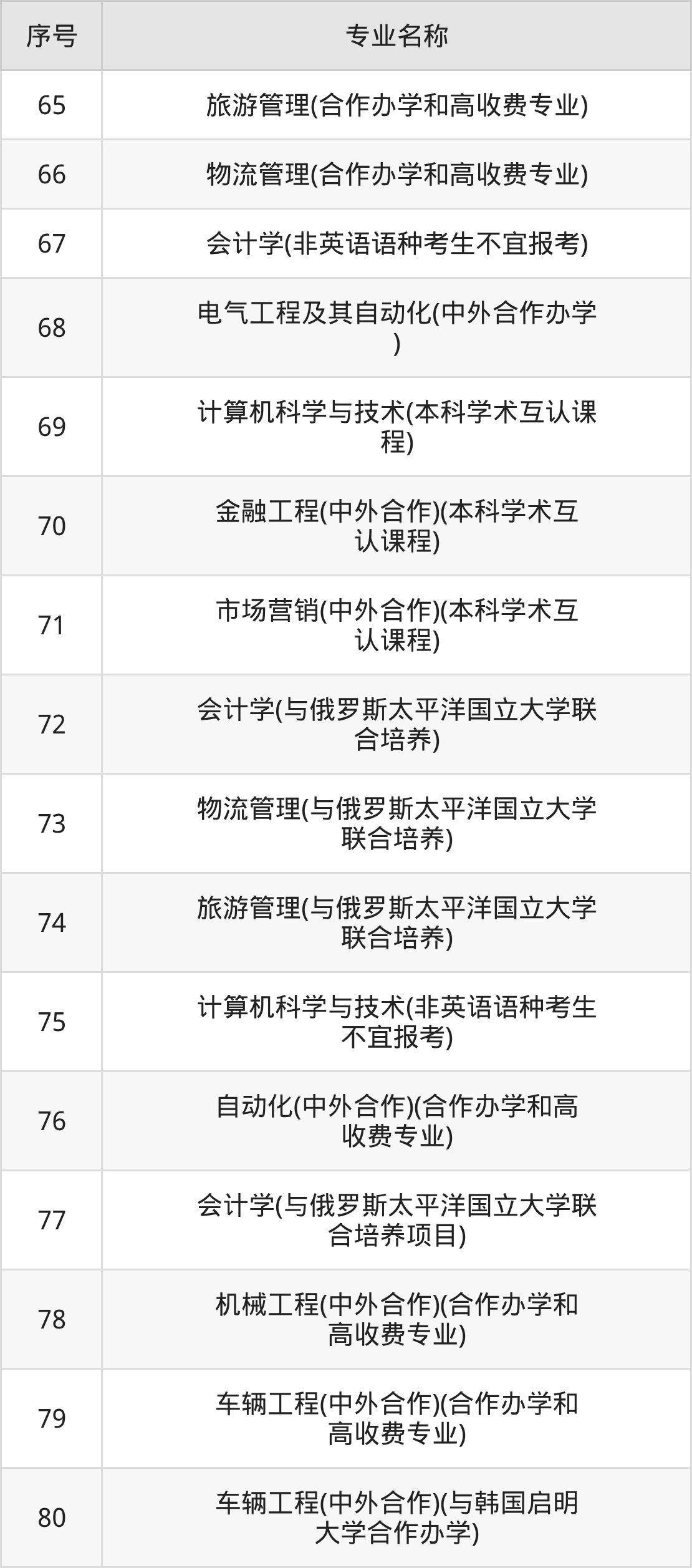 歷史類(文科)本科招生專業(yè):日語、俄語、英語、會計學(xué)、金融學(xué)、經(jīng)濟學(xué)、物流管理、旅游管理、風(fēng)景園林、西班牙語等。