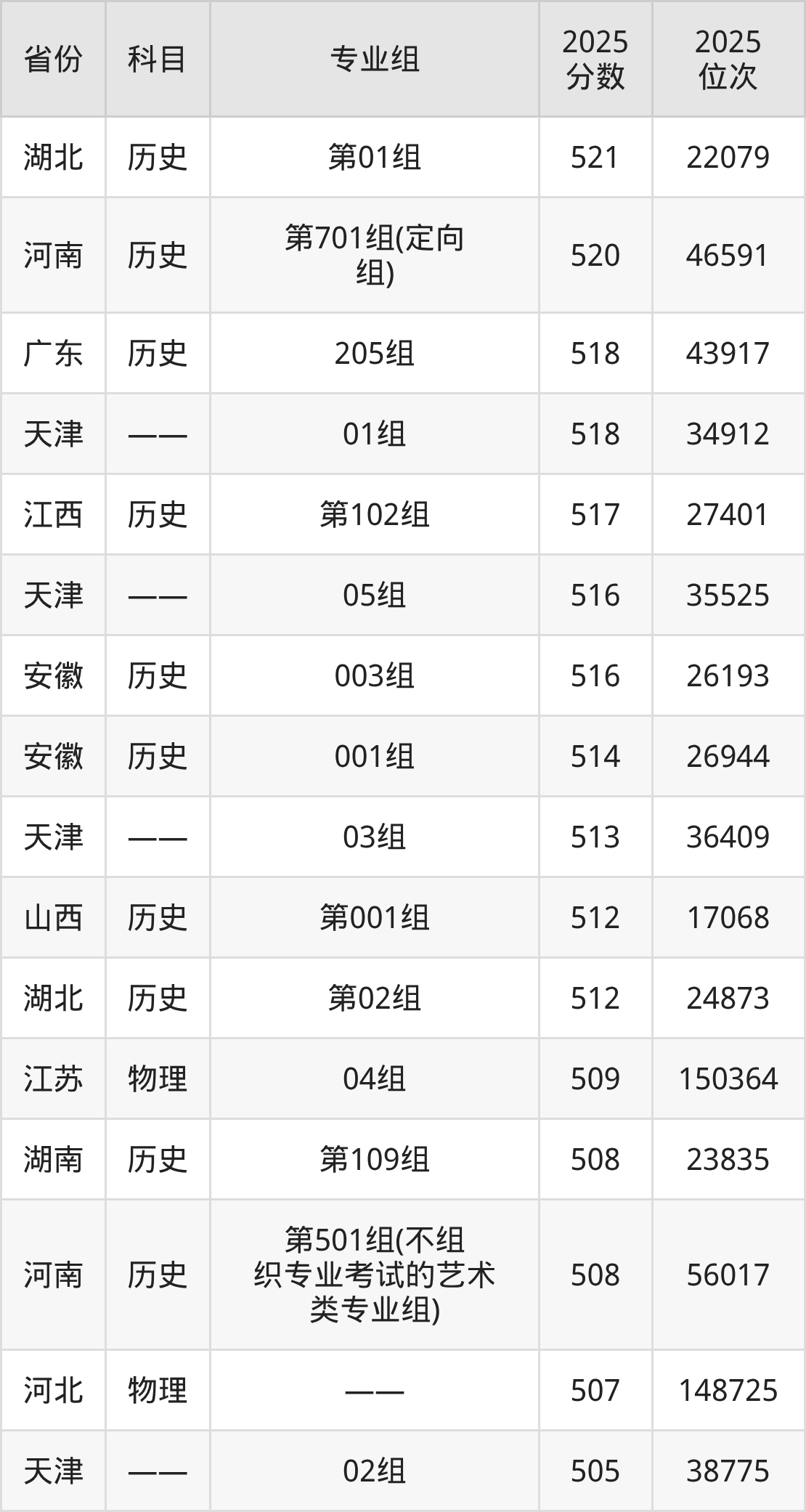 4、歷史學(xué):526分、位次128054名;