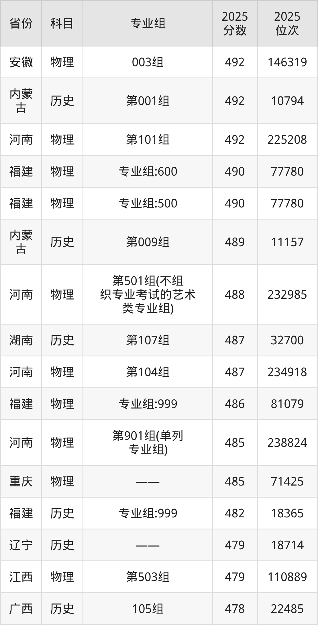 29、人工智能:490分、位次210192名;