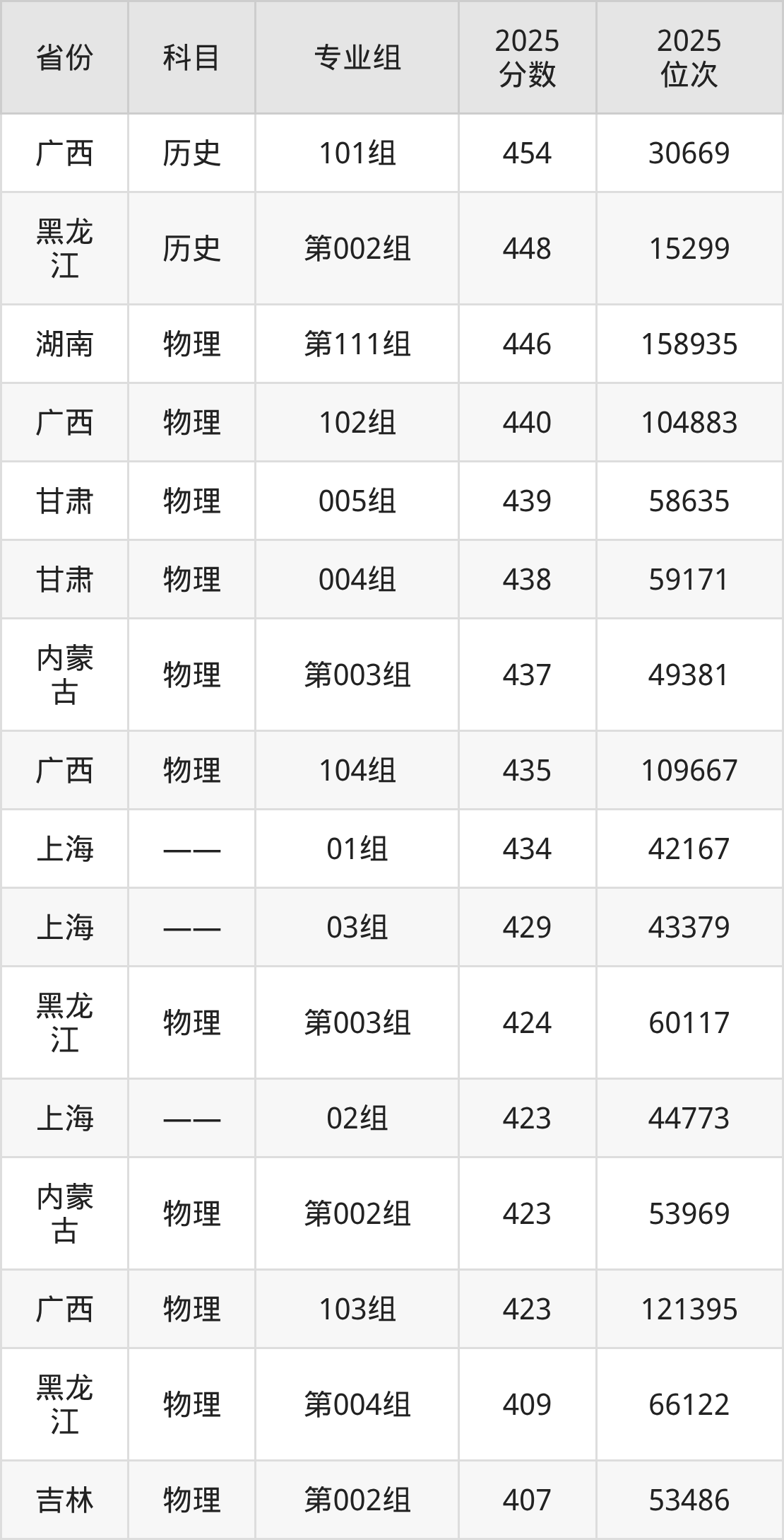 44、生物科學(xué):467分、位次267271名;
