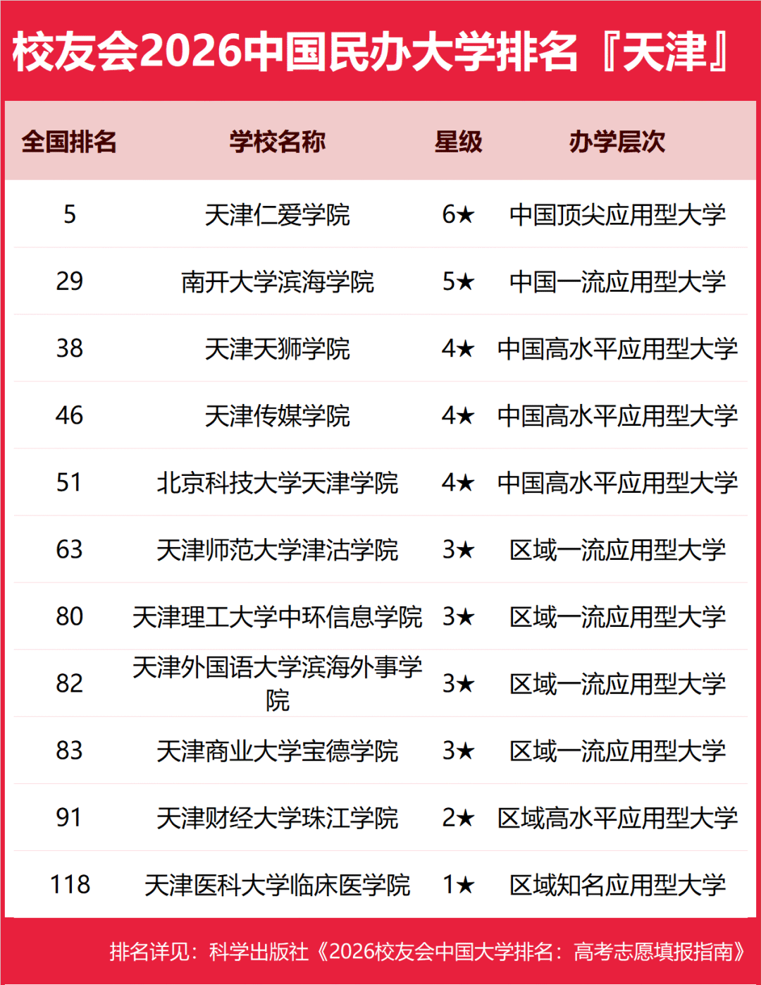 以下是天津民辦本科院校排名名單: