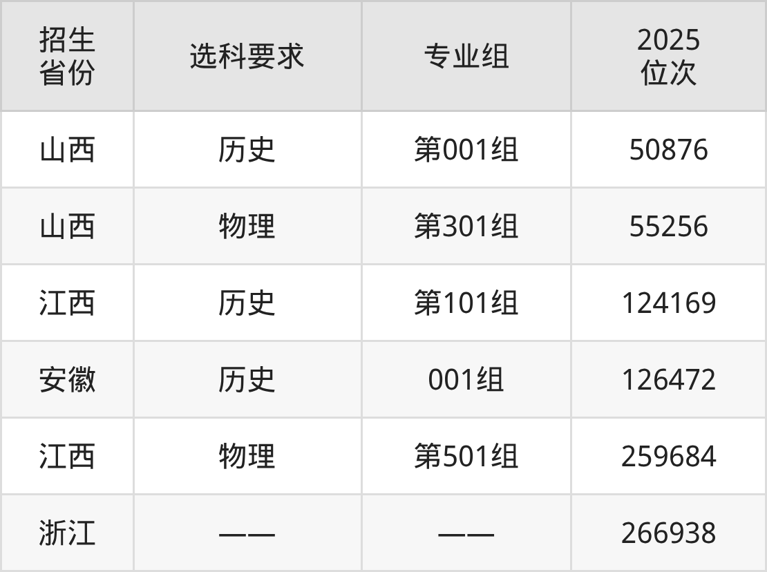 浙江宇翔職業(yè)技術(shù)學(xué)院2025年在全國各省的位次差異較大,最高位次是50876位(山西歷史類)、最低位次是266938位(浙江)。各省具體位次請看下圖: