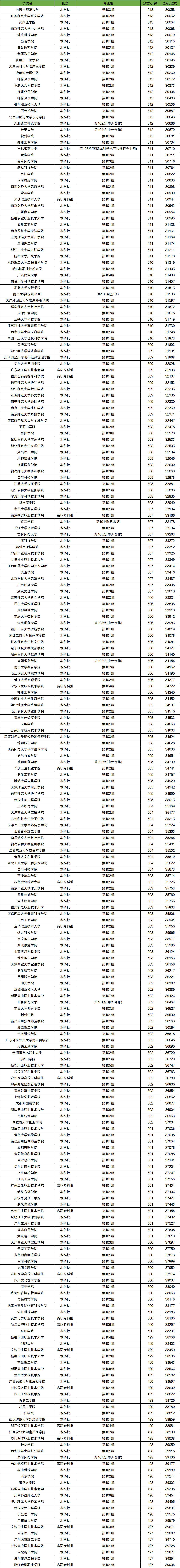 2025年全國大學(xué)在江西省高考錄取位次在3萬名~4萬名之間的學(xué)校有212所,對應(yīng)的分?jǐn)?shù)為513分~497分,對應(yīng)江西全省高考排名區(qū)間為30058-39995。