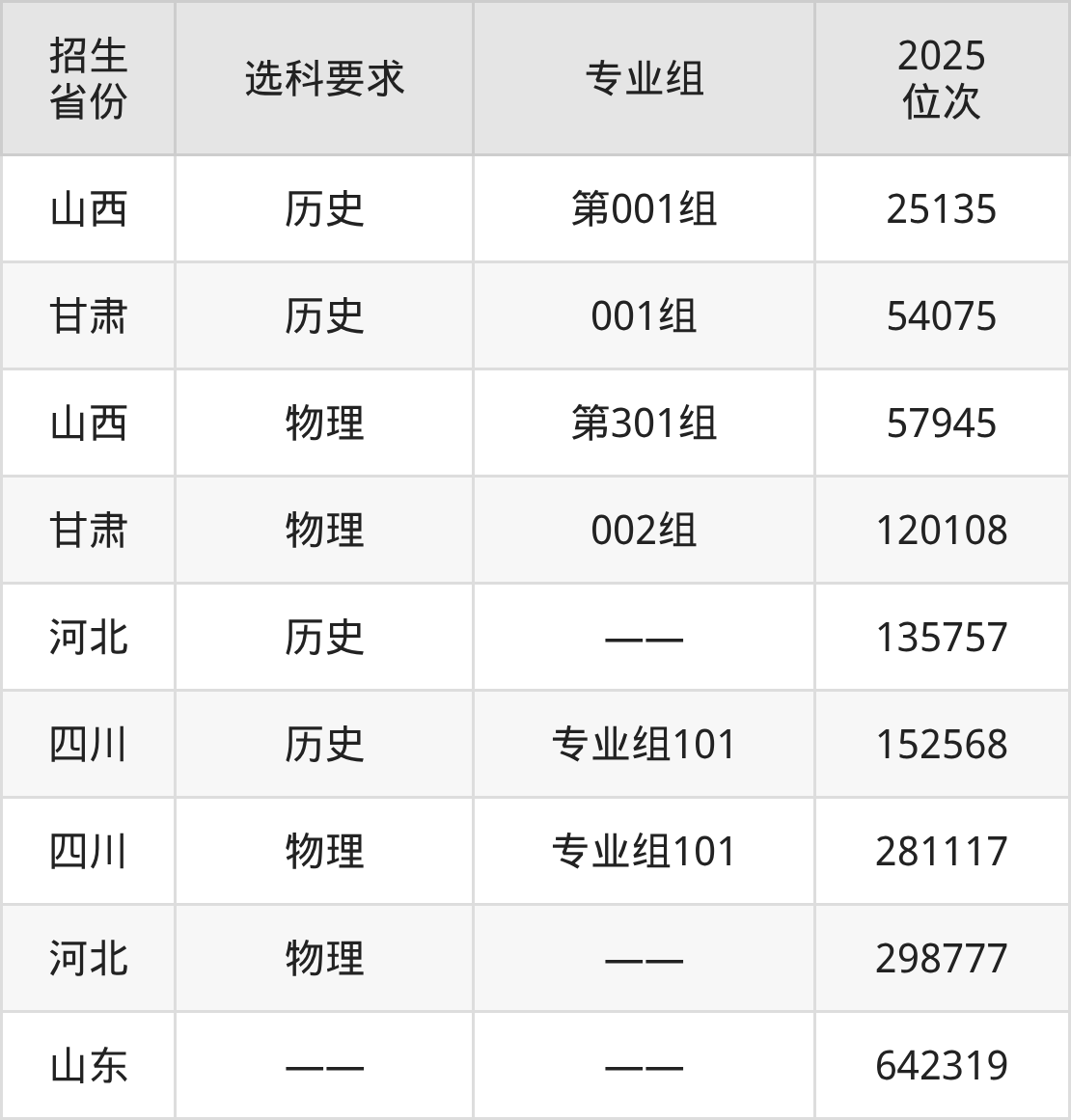 鶴壁能源化工職業(yè)學(xué)院2025年在全國各省的位次差異較大,最高位次是25135位(山西歷史類)、最低位次是642319位(山東)。各省具體位次請看下圖:
