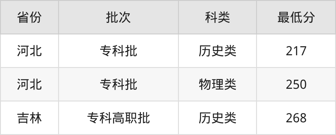 | 批次 | 科類(lèi) | 最低分 | 位次 |