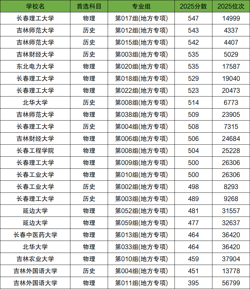 吉林地方專項(xiàng)計(jì)劃大學(xué)名單及錄取分?jǐn)?shù)線: