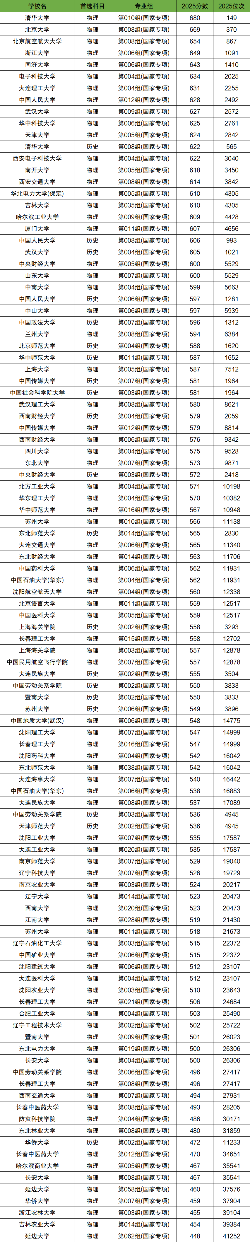 在吉林物理類招生的國家專項(xiàng)計(jì)劃院校中,錄取分?jǐn)?shù)線最低的是延邊大學(xué)第062組,2025年錄取分?jǐn)?shù)線是448分;錄取分?jǐn)?shù)線最高的是清華大學(xué)第010組,2025年錄取分?jǐn)?shù)線是680分。
