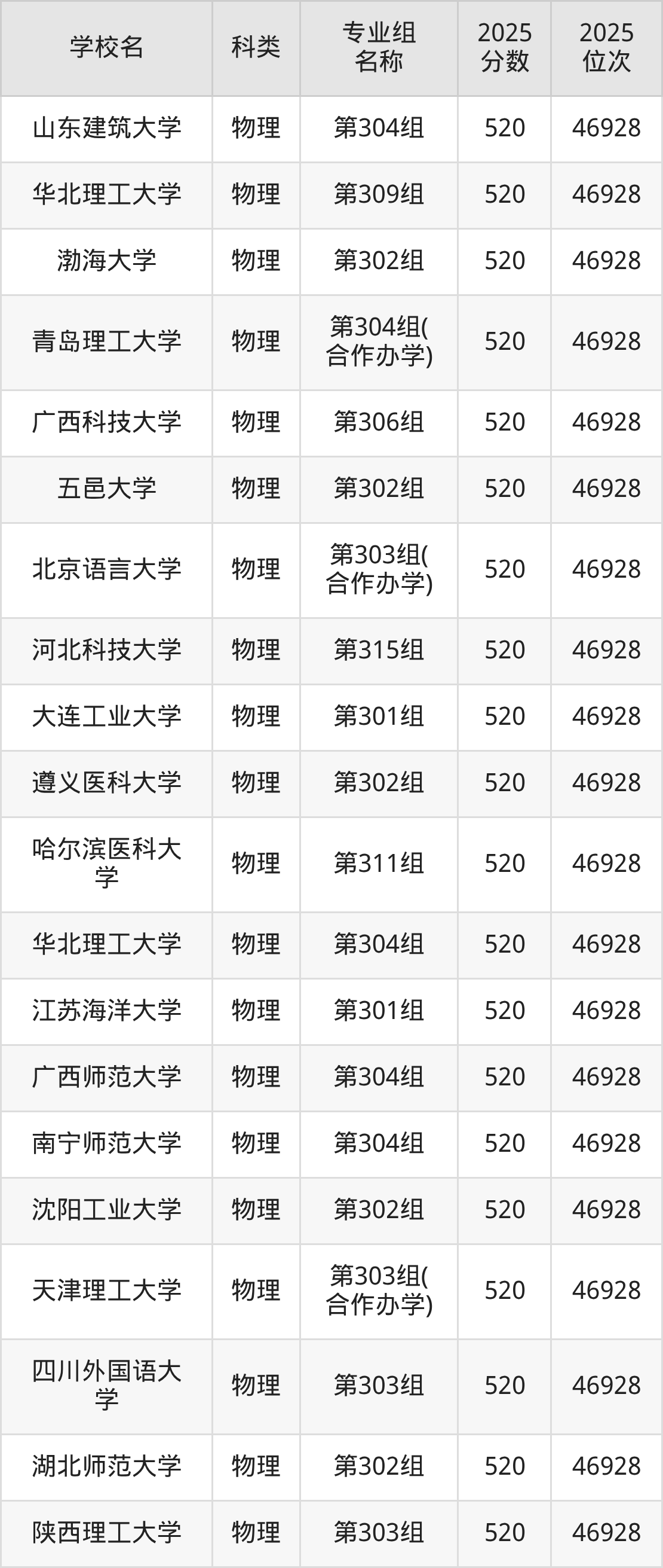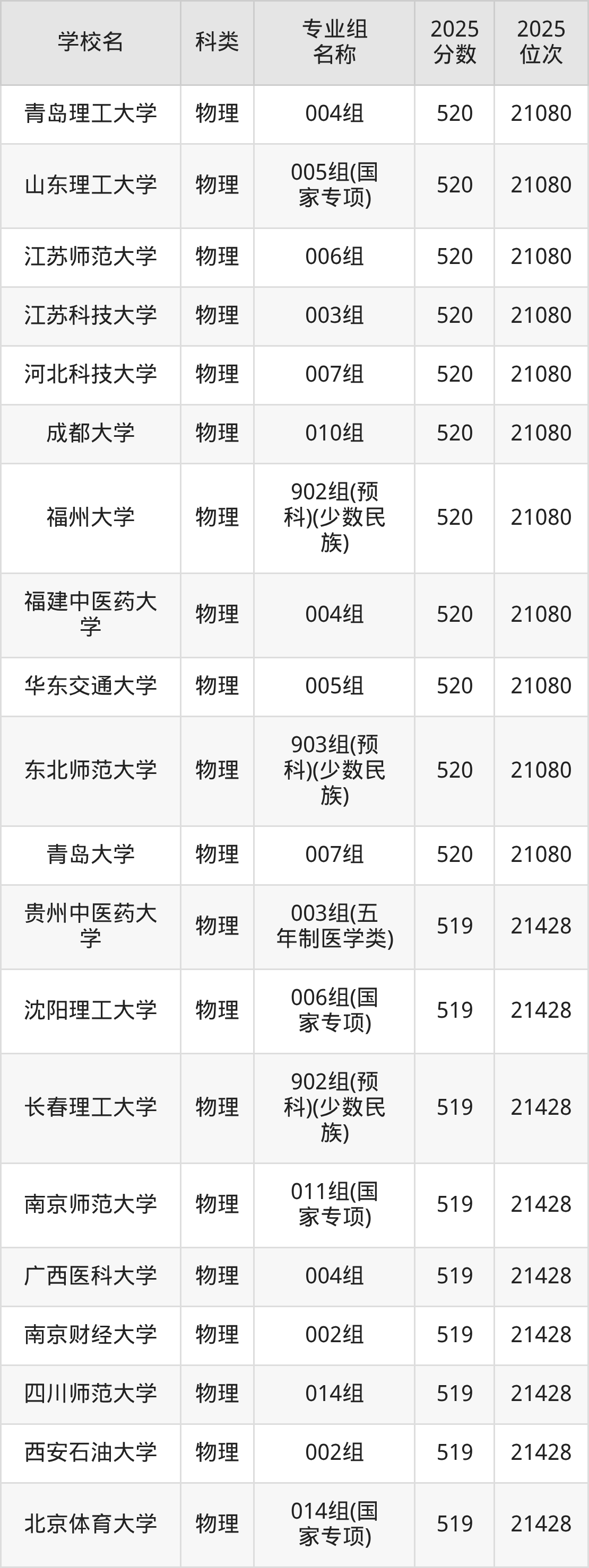 下面是山西物理類520分能上的一本大學(xué)排名Top20一覽表: