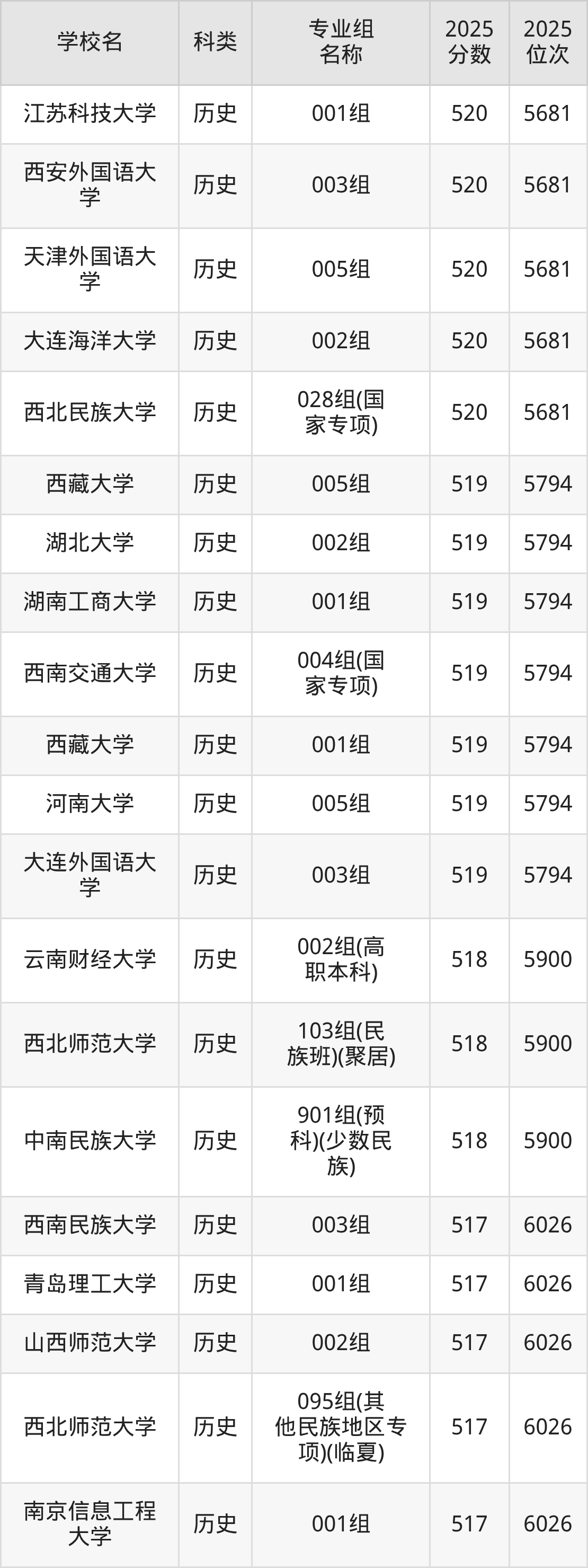 2025年甘肅歷史類本科線為412分,520分能上的一本大學(xué)共計(jì)191所,其中最低分公辦院校為青海民族大學(xué)(008組(民語類及對等培養(yǎng))(加試藏語文)412分),對應(yīng)最低位次為25282名。因此想上公辦本科的考生省排名位次至少要在25282名以內(nèi)。