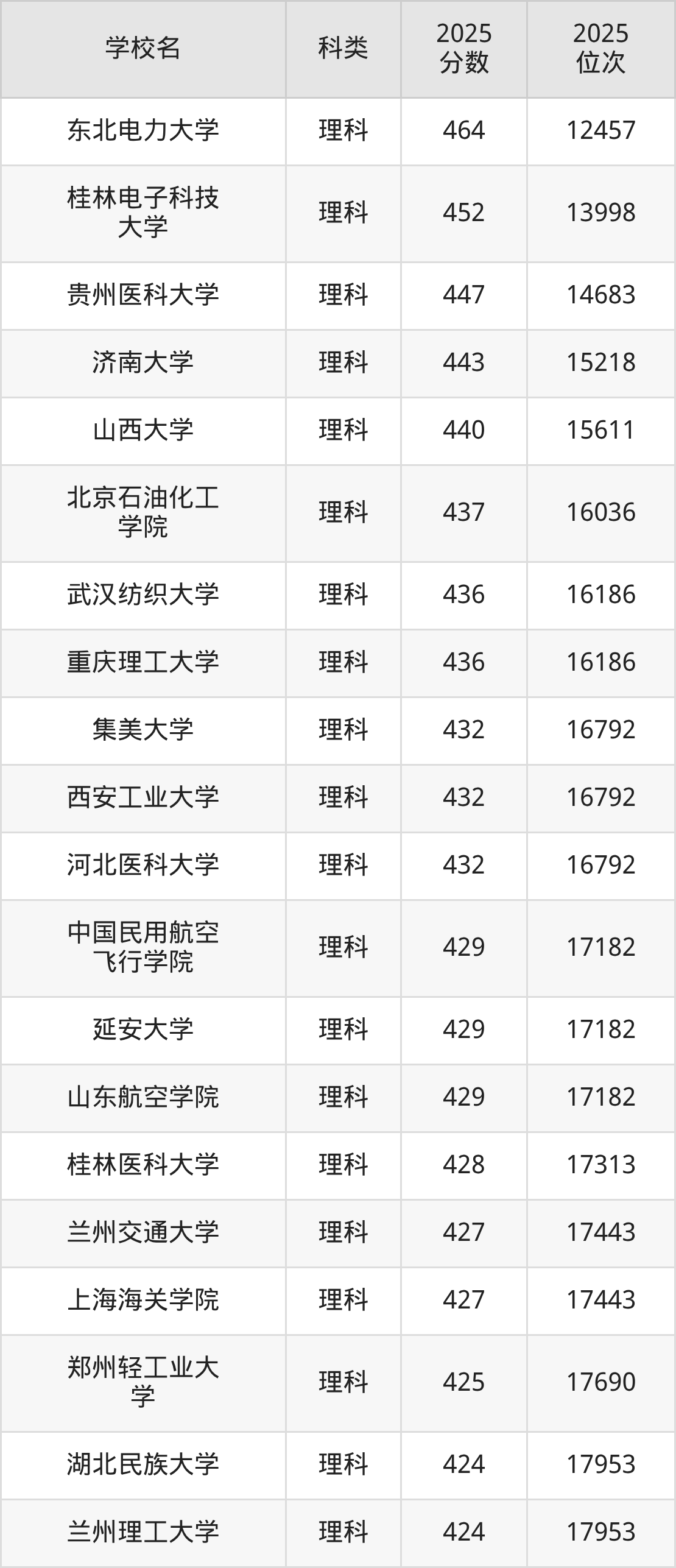 錄取位次排名較低的公辦二本大學(xué)還有廣西民族大學(xué)(位次346607名)、吉林農(nóng)業(yè)大學(xué)(位次344796名)、天津城建大學(xué)(位次344796名)等,適合省排名在34萬名開外的本科生報考。