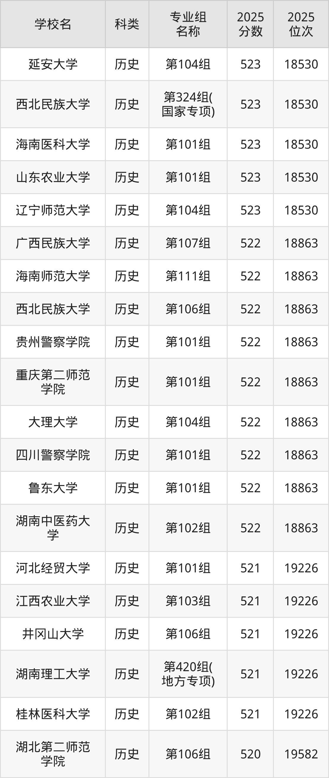 2025年湖南歷史類本科線為446分,523分能上的二本大學(xué)共計(jì)512所,其中公辦大學(xué)錄取位次排名最低的是桂林旅游學(xué)院(第206組(中外合作)446分),其2025最低位次為53081名。