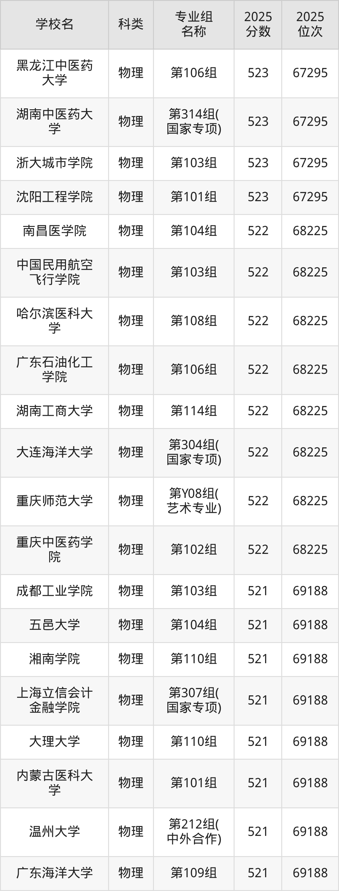 除上述院校外,523分可上的公辦二本大學(xué)還有長沙工業(yè)學(xué)院(506分,位次47732名)、貴州警察學(xué)院(489分,位次60215名)。