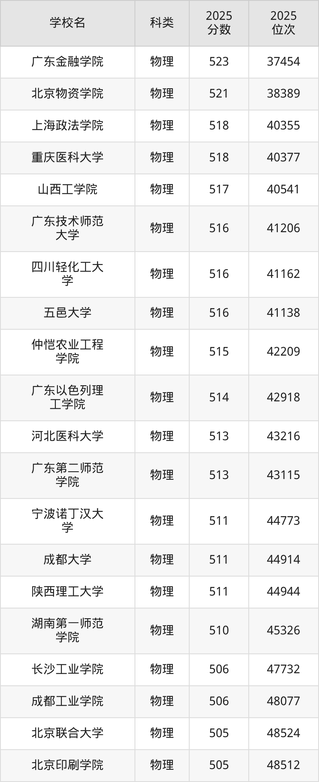 下面是貴州物理類523分能上的二本大學(xué)排名Top20一覽表: