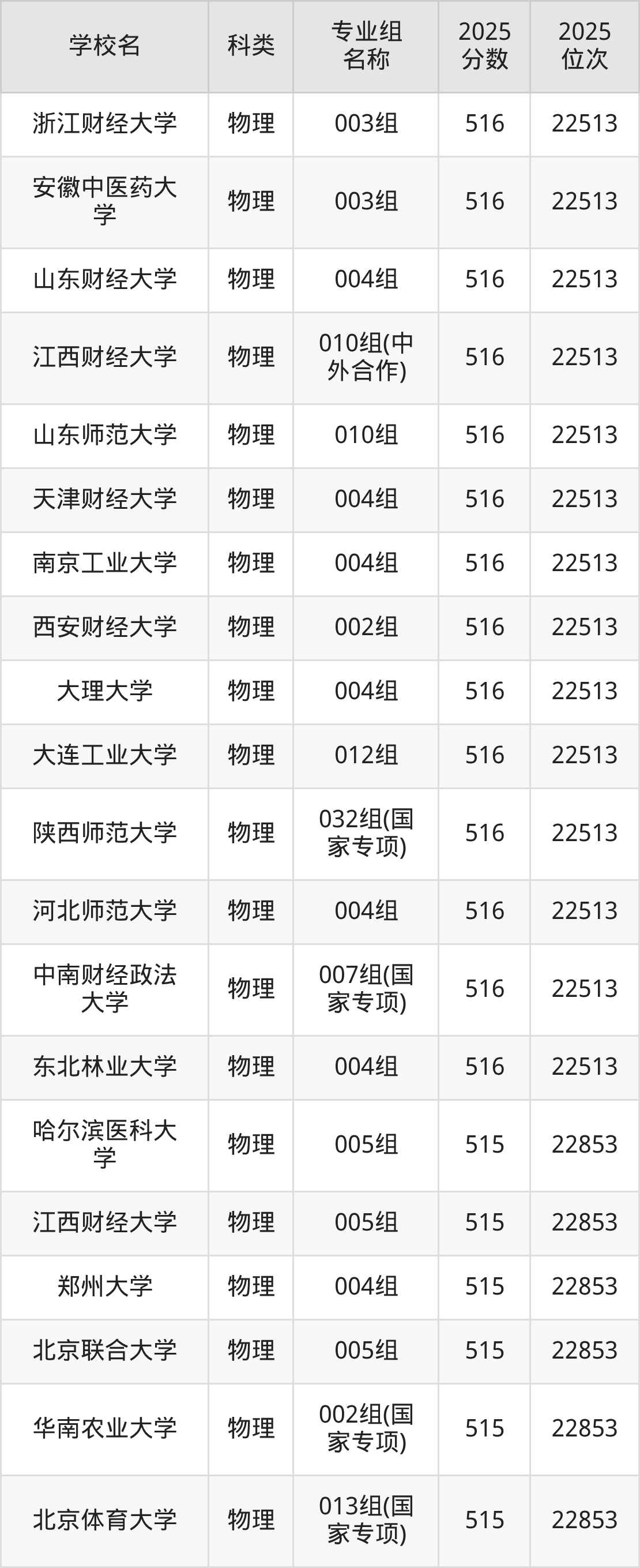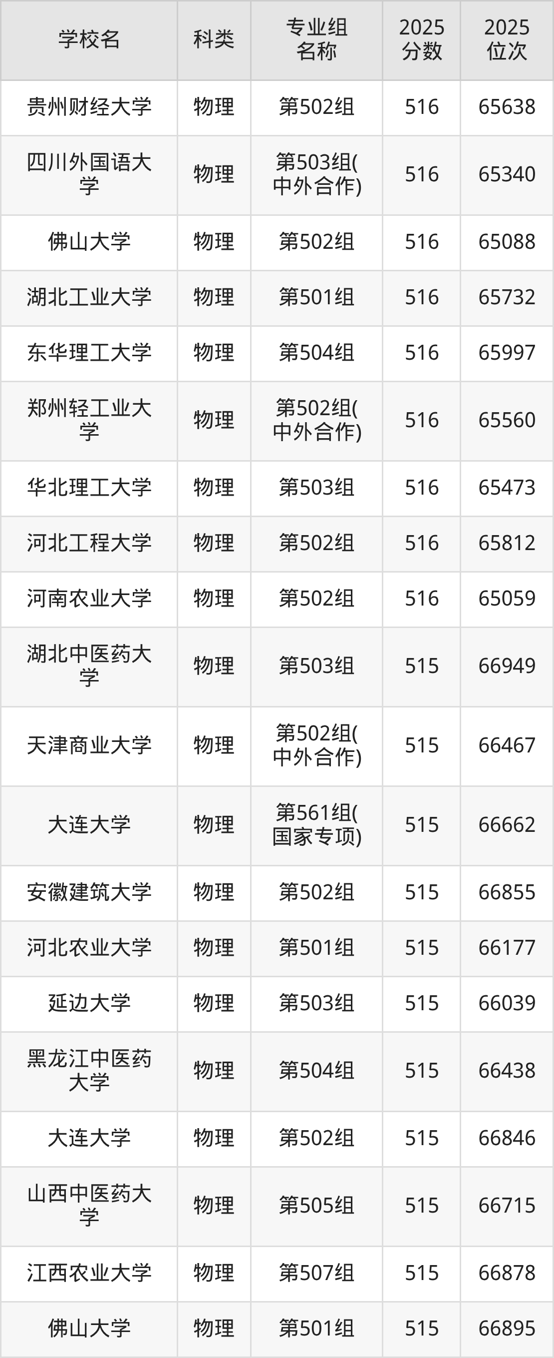 2025年江西物理類本科線為429分,516分能上的一本大學(xué)共計225所,其中公辦大學(xué)錄取位次排名最低的是內(nèi)蒙古工業(yè)大學(xué)(第503組429分,位次172066名),即代表考生省排名位次在172066名及以內(nèi)就可以報考公辦本科。
