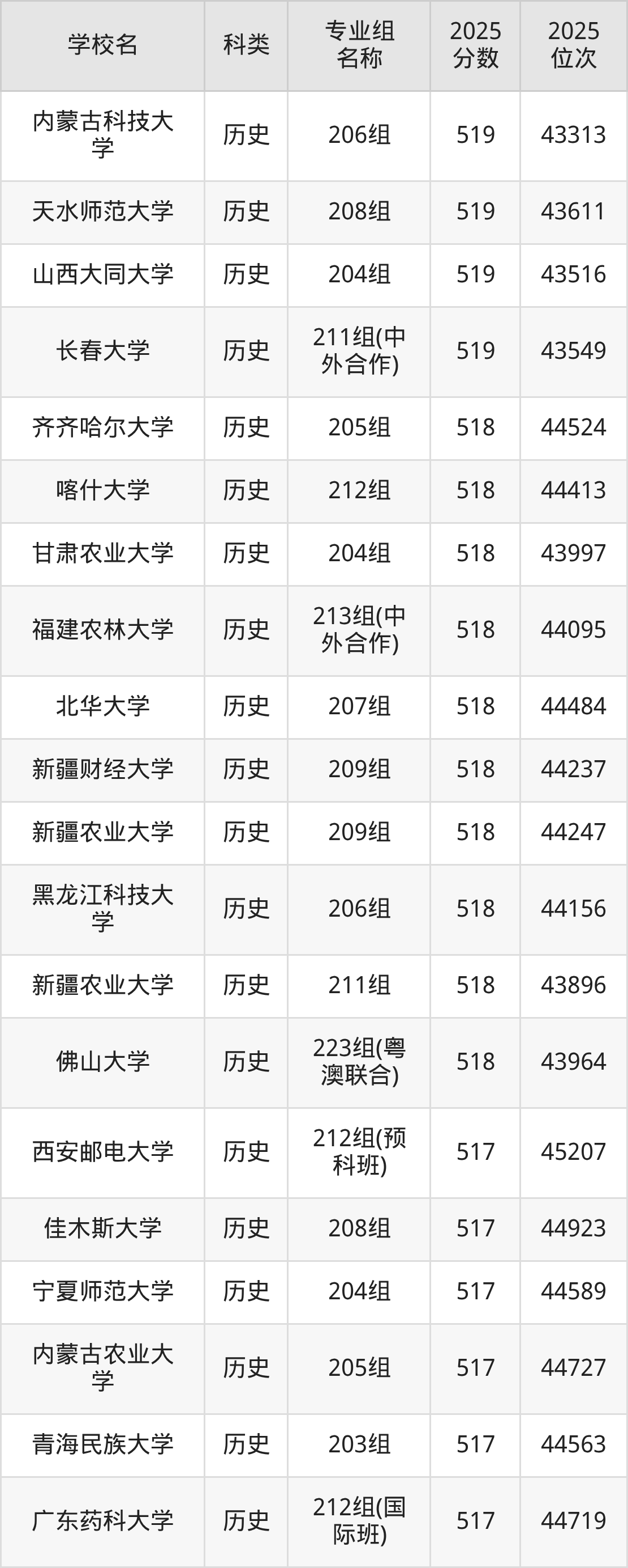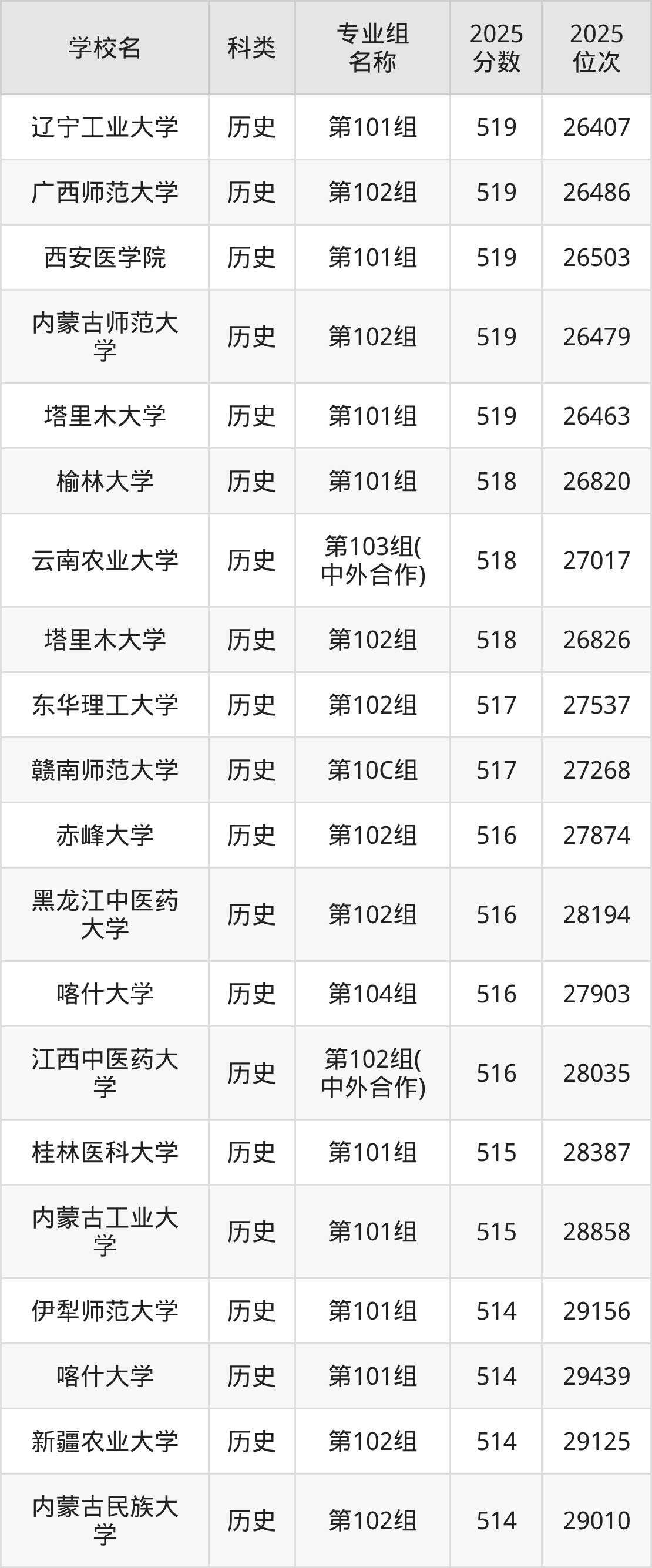 2025年江西歷史類本科線為486分,519分能上的一本大學共計29所,其中公辦大學錄取位次排名最低的是華北理工大學(第103組490分),其2025最低位次為44375名。