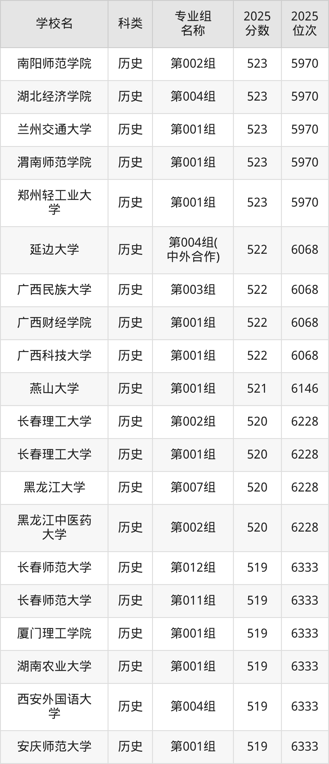 下面是吉林歷史類523分能上的本科大學(xué)排名Top20一覽表: