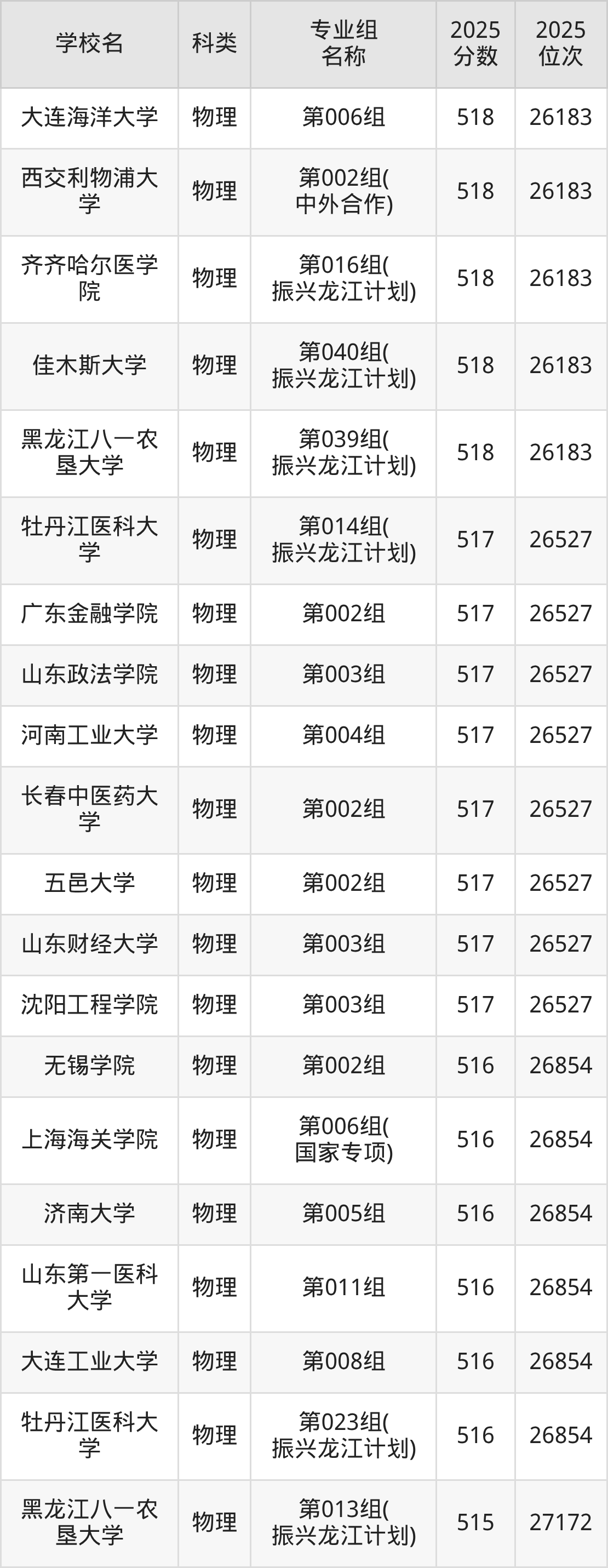 下面是黑龍江物理類518分能上的二本大學(xué)排名Top20一覽表: