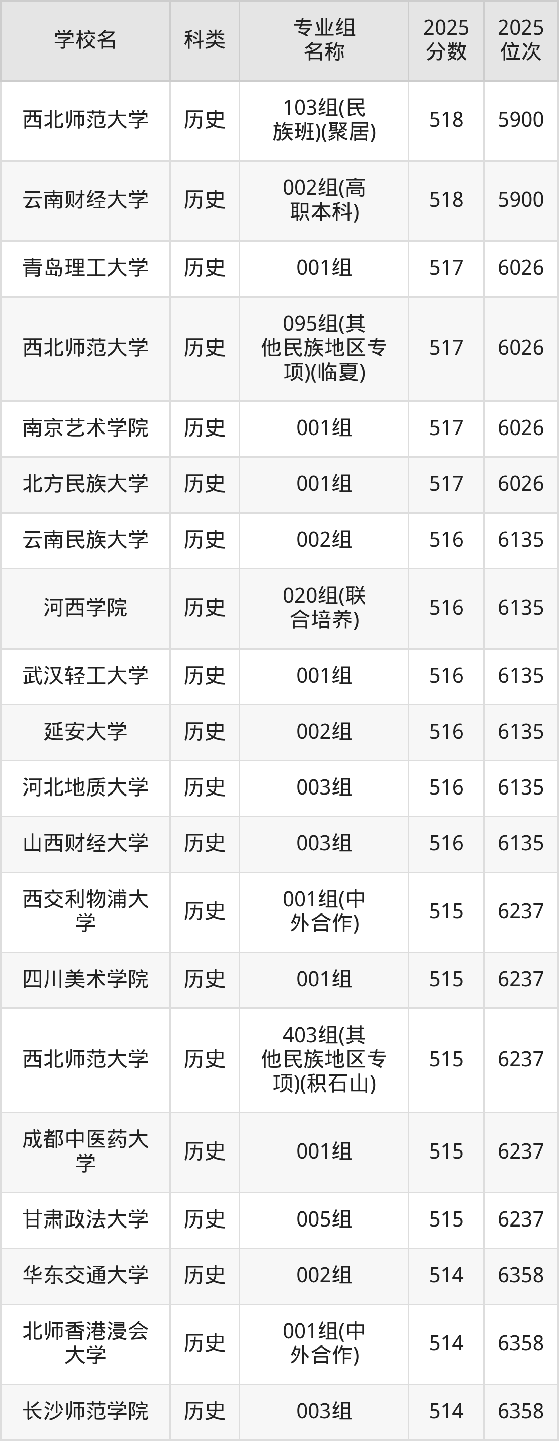 2025年甘肅歷史類本科線為412分,518分能上的二本大學(xué)共計525所,其中公辦大學(xué)錄取位次排名最低的是青海民族大學(xué)(008組(民語類及對等培養(yǎng))(加試藏語文)412分,位次25282名),即代表考生省排名位次在25282名及以內(nèi)就可以報考公辦本科。