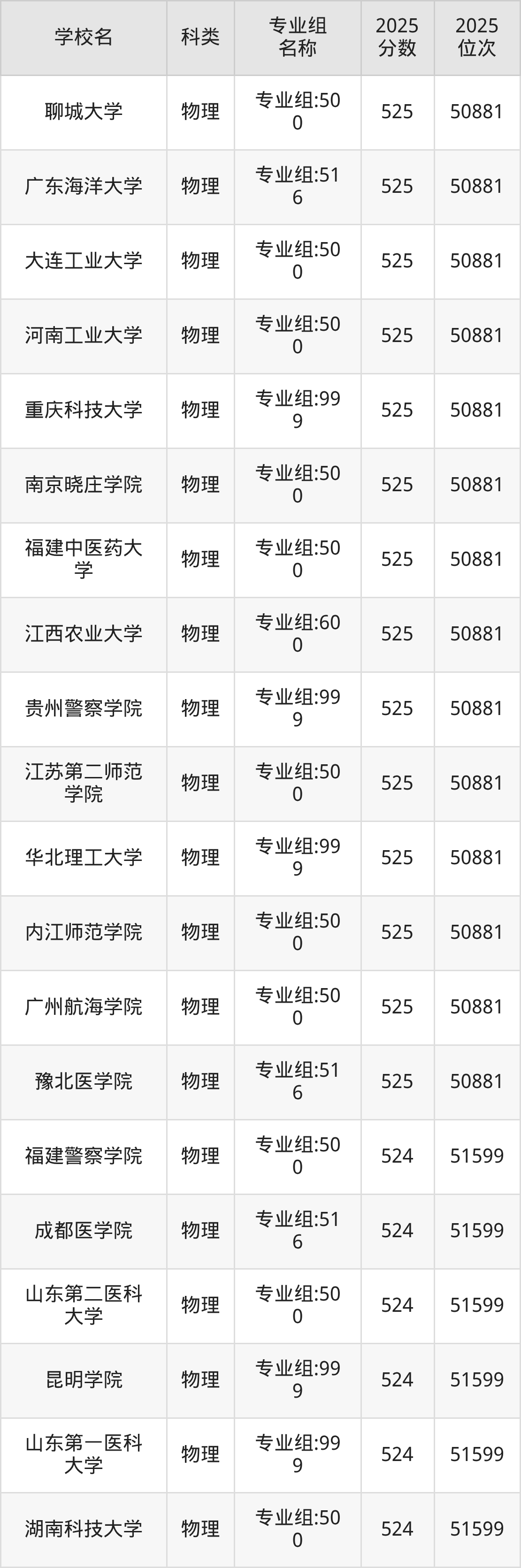 2025年湖北物理類本科線為426分,525分能上的二本大學(xué)共計(jì)645所,其中公辦大學(xué)錄取位次排名最低的是瓊臺(tái)師范學(xué)院(第06組(中外合作)441分),其2025最低位次為137043名。