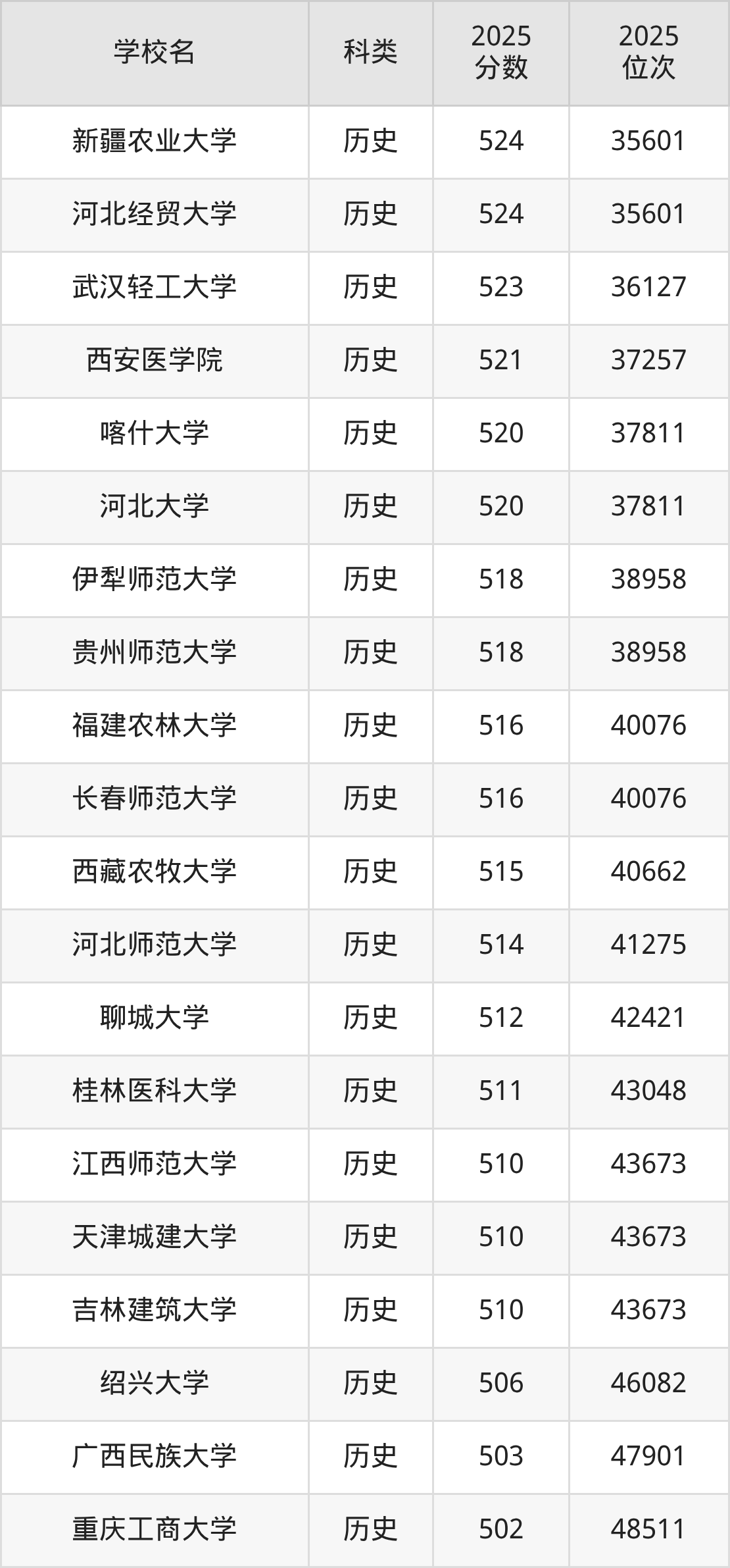 2025年河北歷史類(lèi)本科線(xiàn)為477分,524分能上的一本大學(xué)共計(jì)21所,其中最低分公辦院校為廣西師范大學(xué)(494分),對(duì)應(yīng)最低位次為53596名。因此想上公辦本科的考生省排名位次至少要在53596名以?xún)?nèi)。