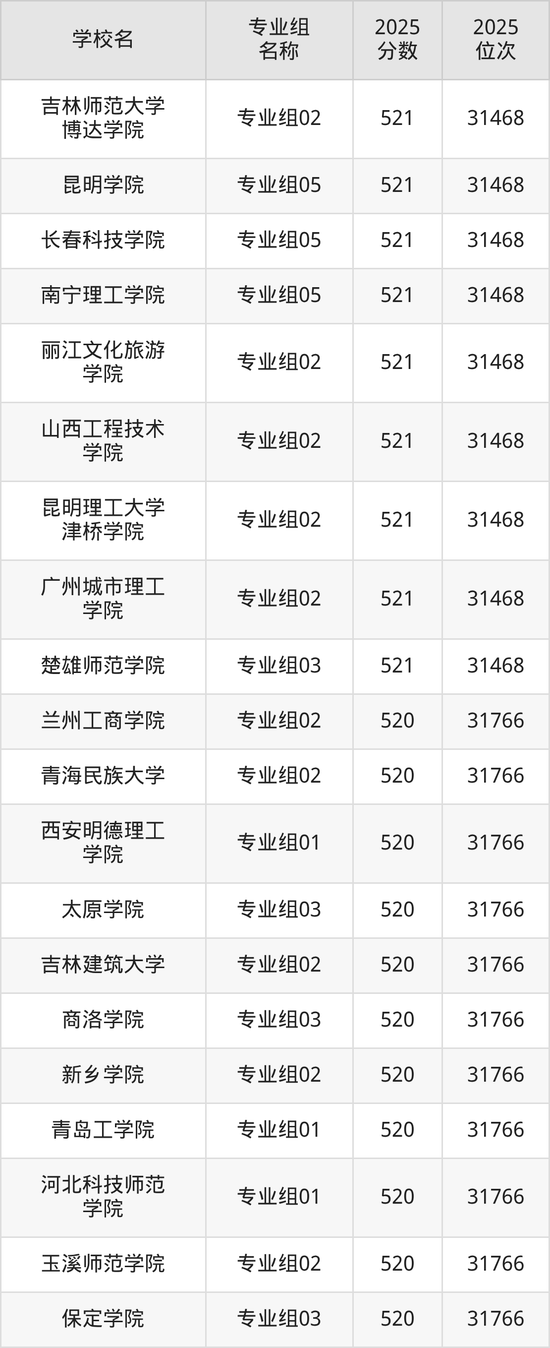 除上述院校外,521分可上的公辦二本大學(xué)還有蘭州城市學(xué)院(002組499分,位次33448名)、商丘師范學(xué)院(001組497分,位次138928名)。
