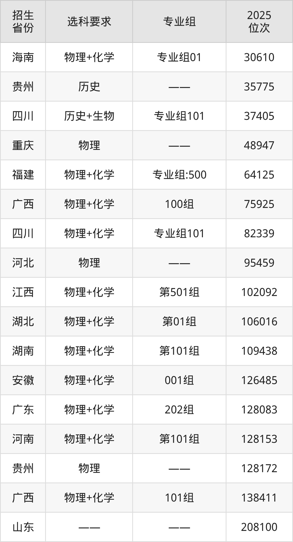遵義醫(yī)科大學(xué)醫(yī)學(xué)與科技學(xué)院2025年在全國各省的位次差異較大,最高位次是30610位(海南)、最低位次是208100位(山東)。各省具體位次請看下圖: