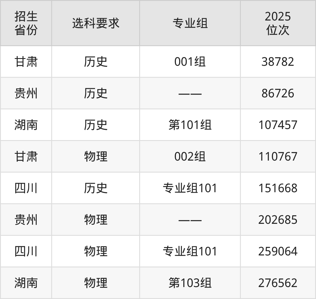 益陽師范高等??茖W(xué)校2025年在全國各省的位次差異較大,最高位次是38782位(甘肅歷史類)、最低位次是276562位(湖南物理類)。各省具體位次請看下圖:
