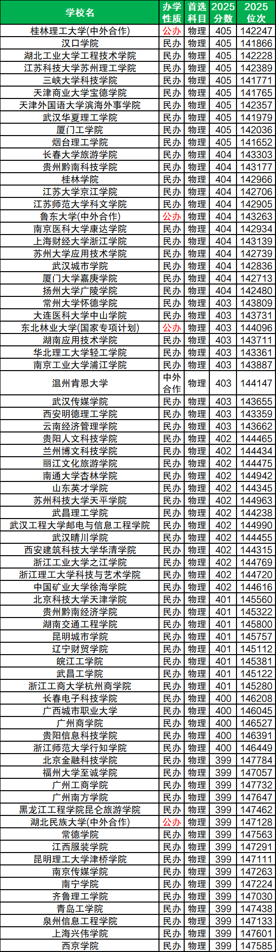 桂林理工大學(xué)(中外合作):2025錄取最低分405分、對應(yīng)最低位次142247名;