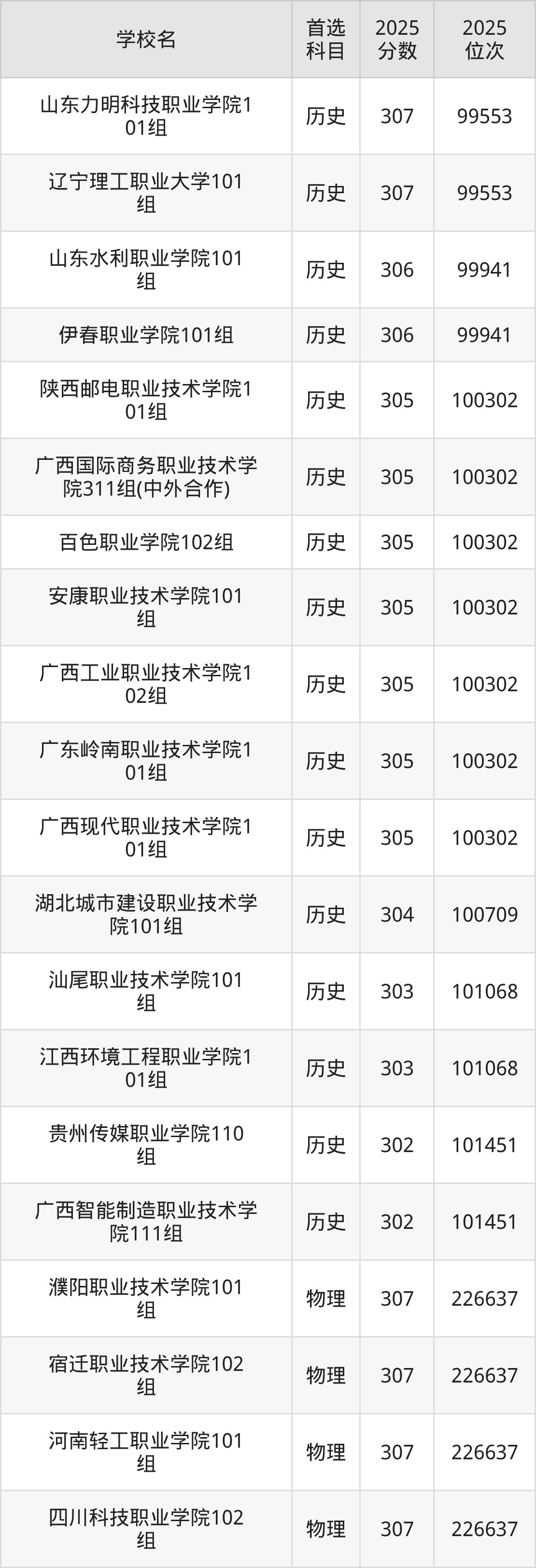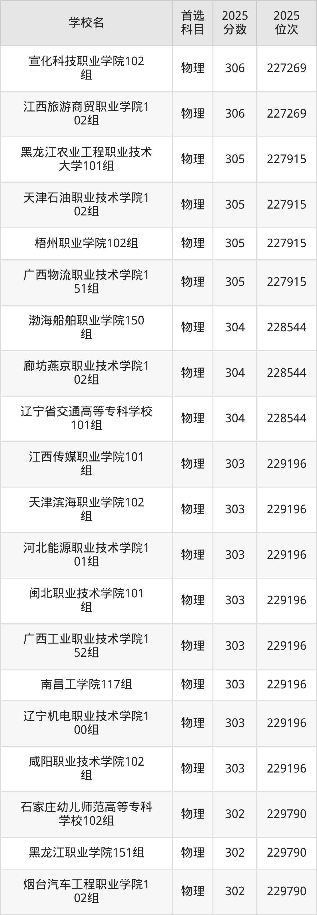 | 學(xué)校名 | 首選 科目 | 2025 分?jǐn)?shù) | 2025 位次 |