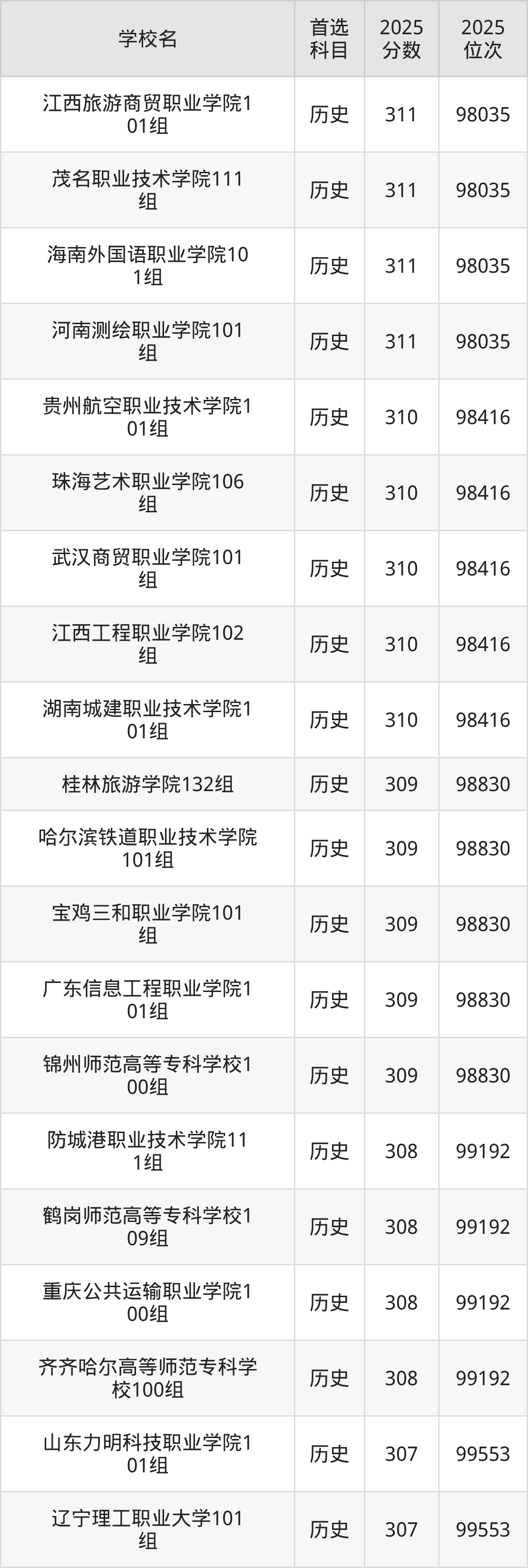 | 遼寧工程職業(yè)學(xué)院 | 歷史 | 310 | 49450 |