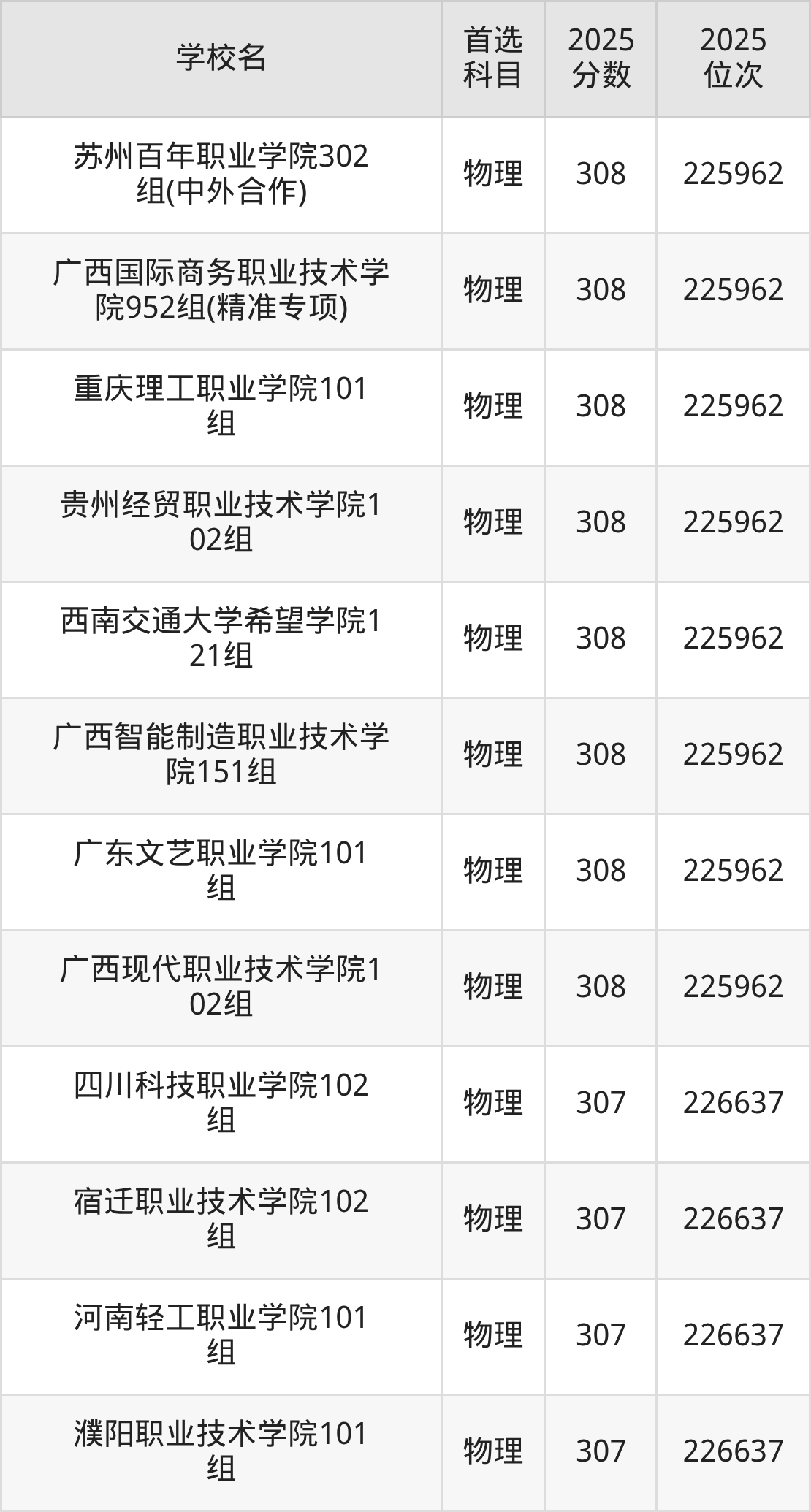 | 學(xué)校名 | 首選 科目 | 2025 分?jǐn)?shù) | 2025 位次 |