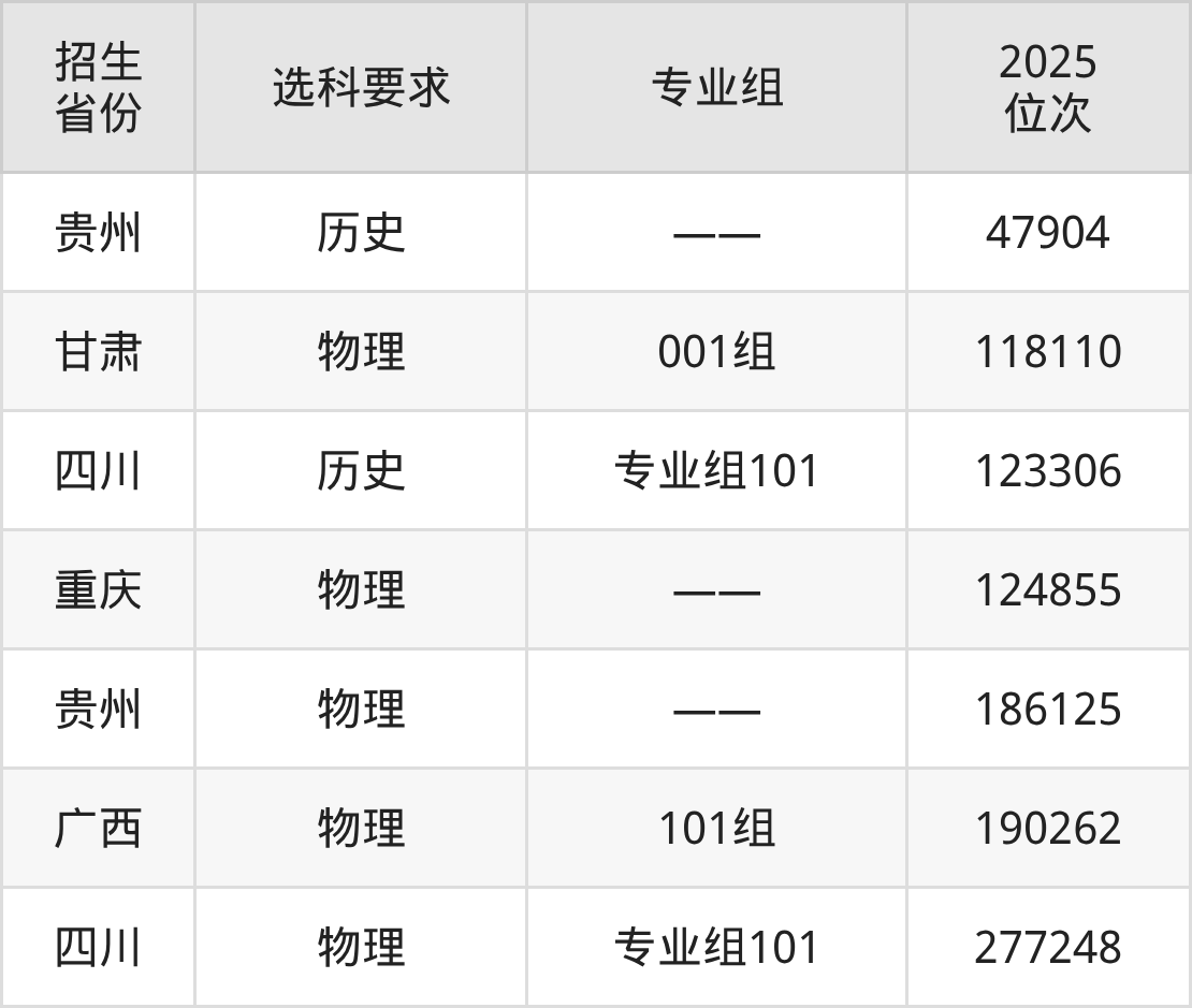 大理農(nóng)林職業(yè)技術(shù)學(xué)院2025年在全國各省的位次差異較大,最高位次是47904位(貴州歷史類)、最低位次是277248位(四川物理類)。各省具體位次請看下圖: