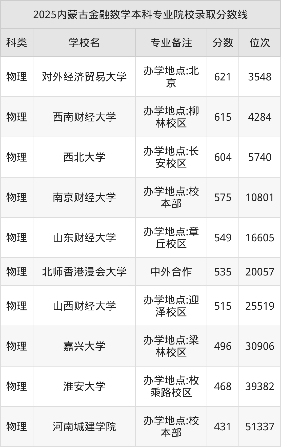 2025年內(nèi)蒙古金融數(shù)學(xué)分?jǐn)?shù)線排名前5的大學(xué)名單(本科最難報(bào)考):