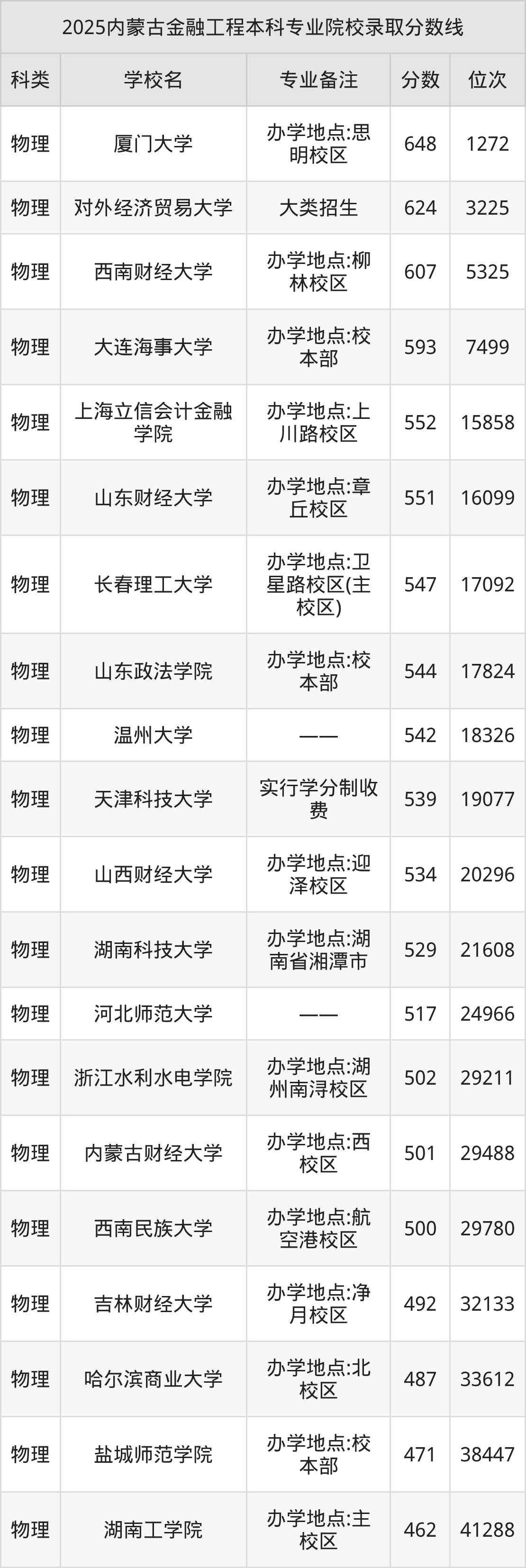1、廈門大學:金融工程(辦學地點:思明校區(qū))648分、物理類位次1272名;