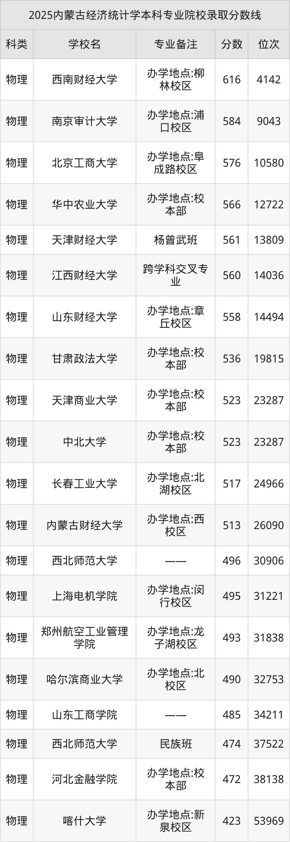 1、西南財(cái)經(jīng)大學(xué):經(jīng)濟(jì)統(tǒng)計(jì)學(xué)(辦學(xué)地點(diǎn):柳林校區(qū))616分、物理類位次4142名;