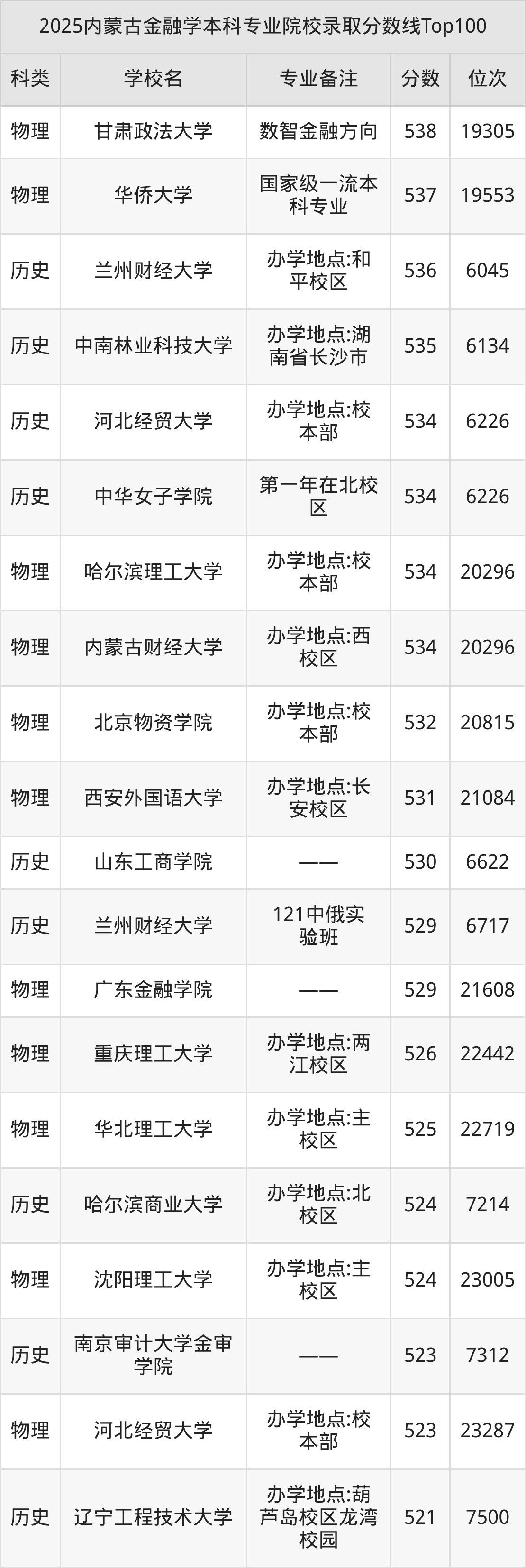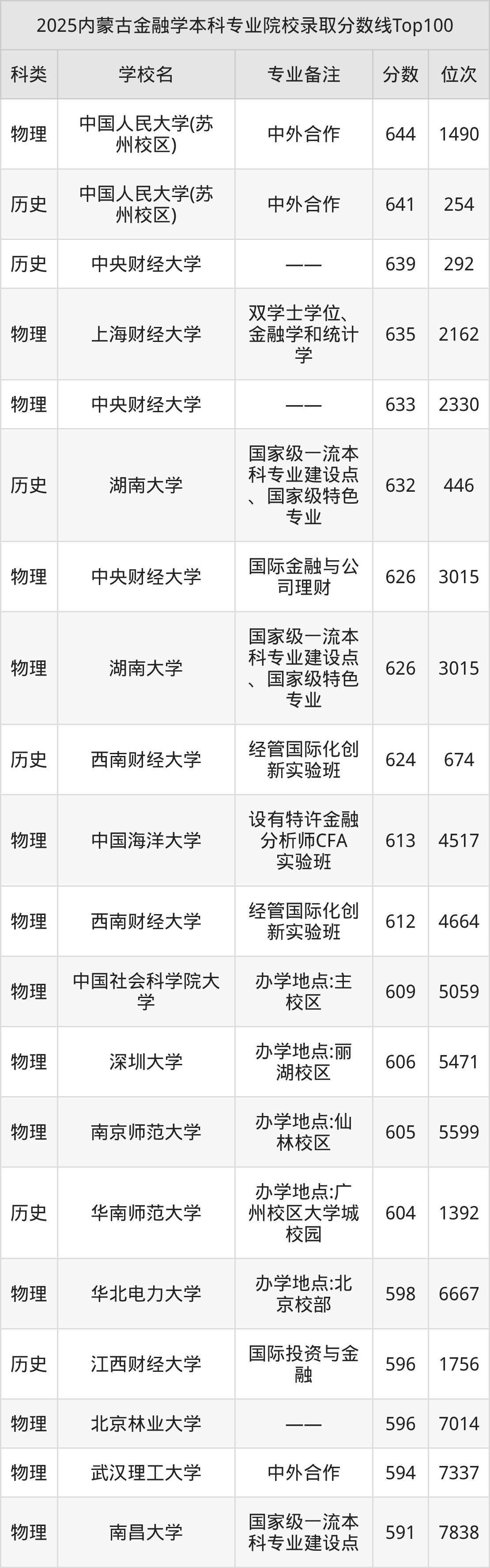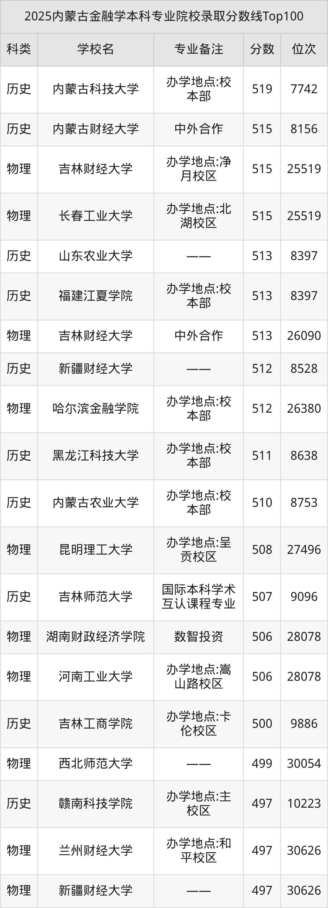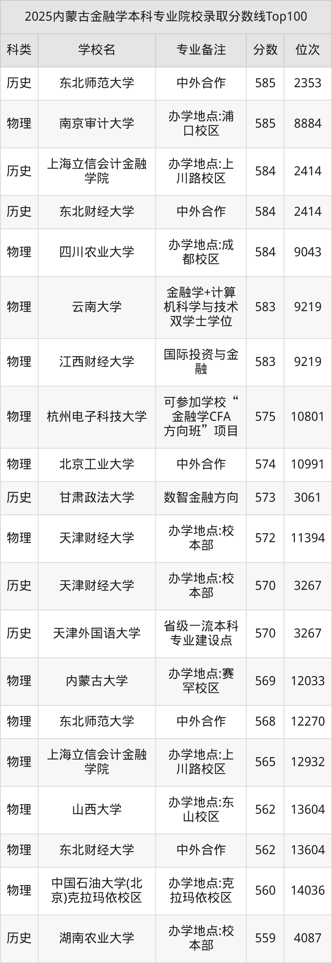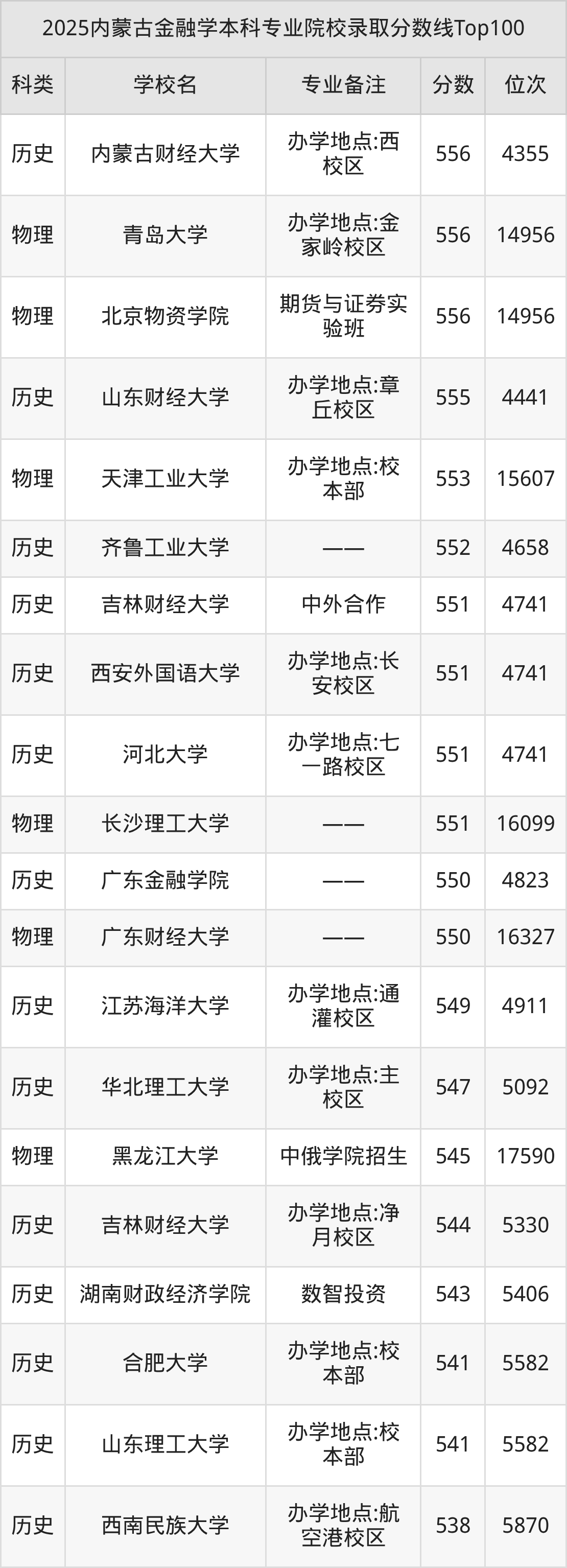 2025年內(nèi)蒙古金融學(xué)分?jǐn)?shù)線排名前5的大學(xué)名單(本科最難報(bào)考):