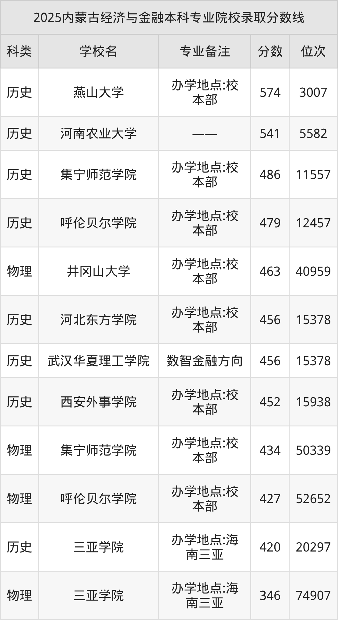 4、呼倫貝爾學(xué)院:經(jīng)濟(jì)與金融(辦學(xué)地點(diǎn):校本部)479分、歷史類位次12457名;