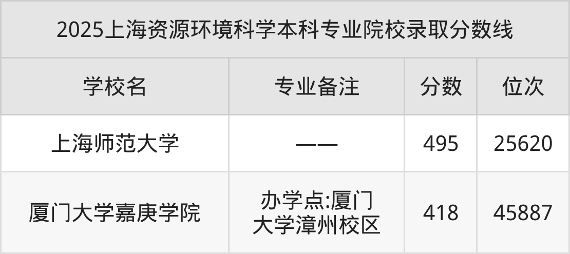 1、上海師范大學(xué):資源環(huán)境科學(xué)495分、位次25620名;