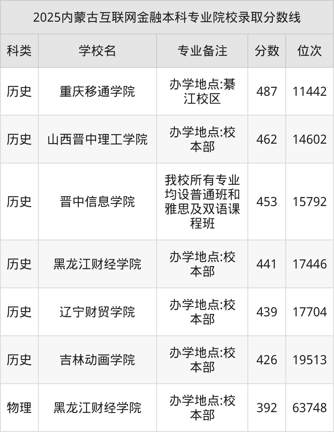 2025年內(nèi)蒙古互聯(lián)網(wǎng)金融分?jǐn)?shù)線排名前5的大學(xué)名單(本科最難報(bào)考):
